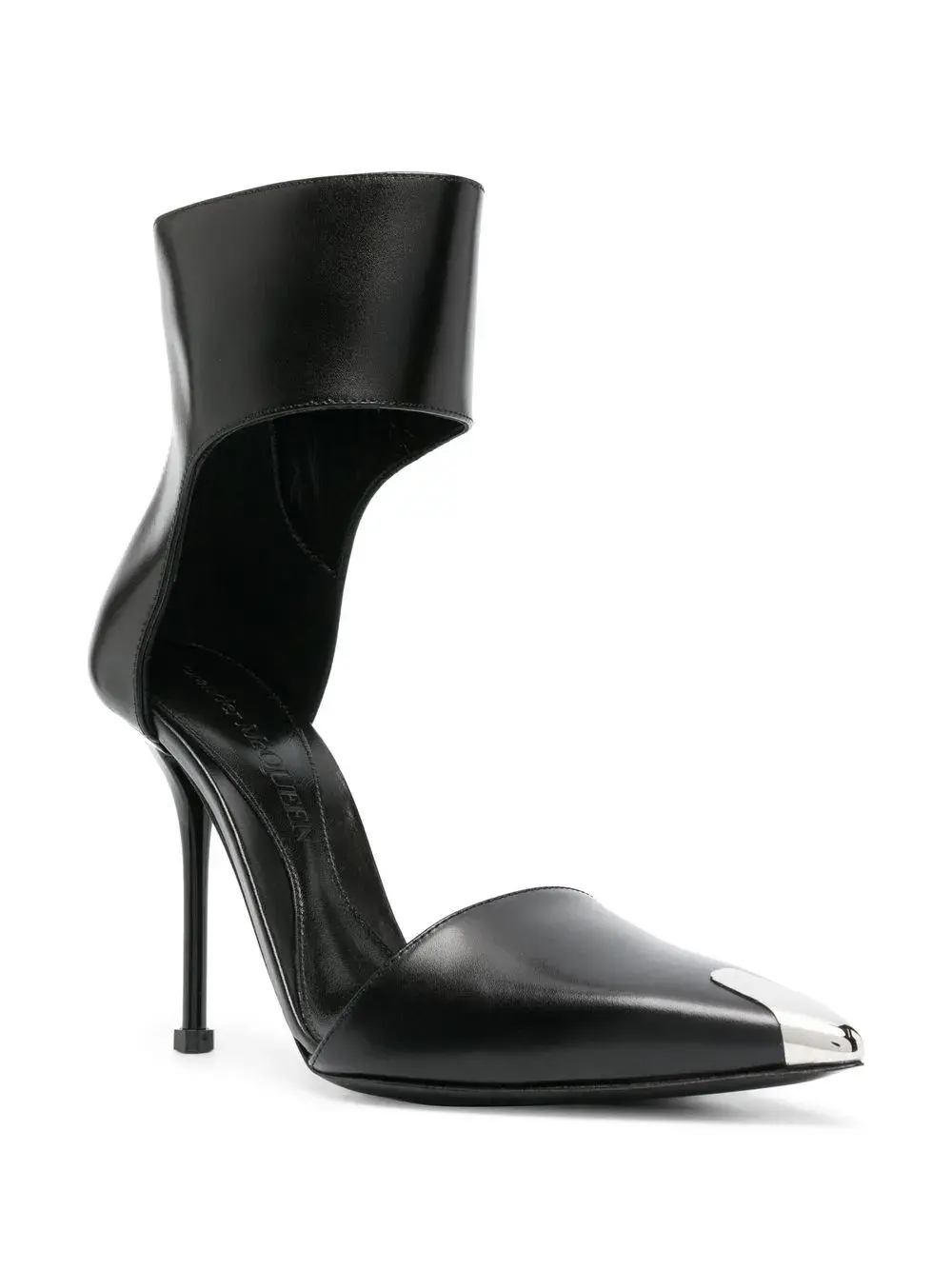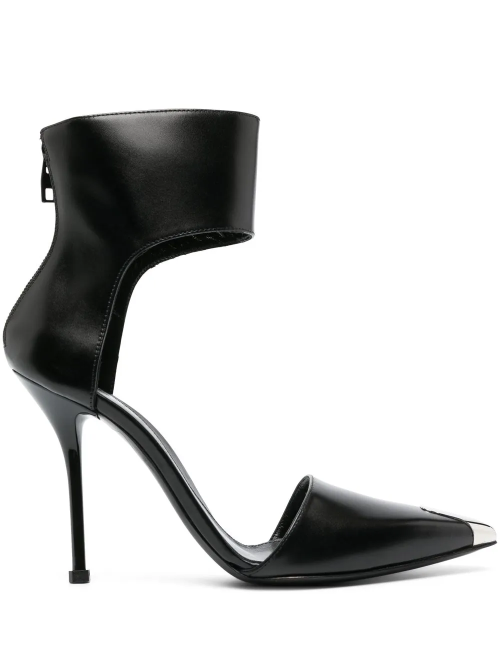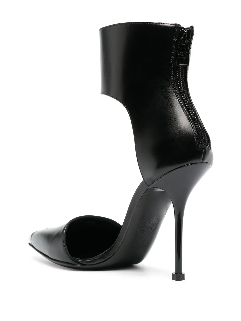 Черный, серебро, телячья кожа, высота по щиколотку, вырезные детали, носок с металлической накладкой, заостренный носок, застежка на молнии сзади, кожаная стелька с логотипом и каблук на высокой шпильке.