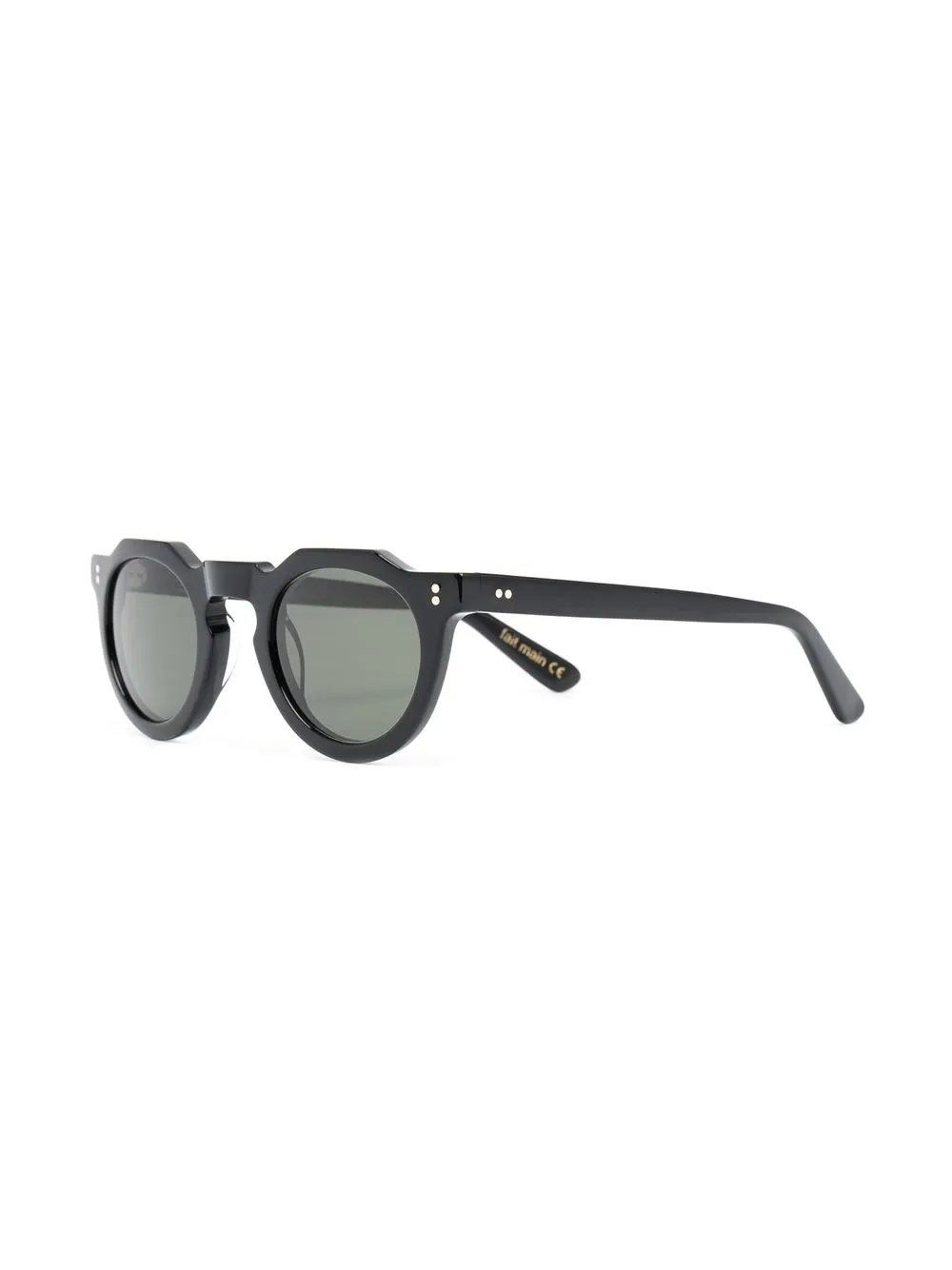 Черный, темно-зеленый, ацетат, круглая оправа, затемненные линзы зеленого цвета, линзы с защитой от ультрафиолета и завышенный мост. В комплект входит защитный чехол для очков.