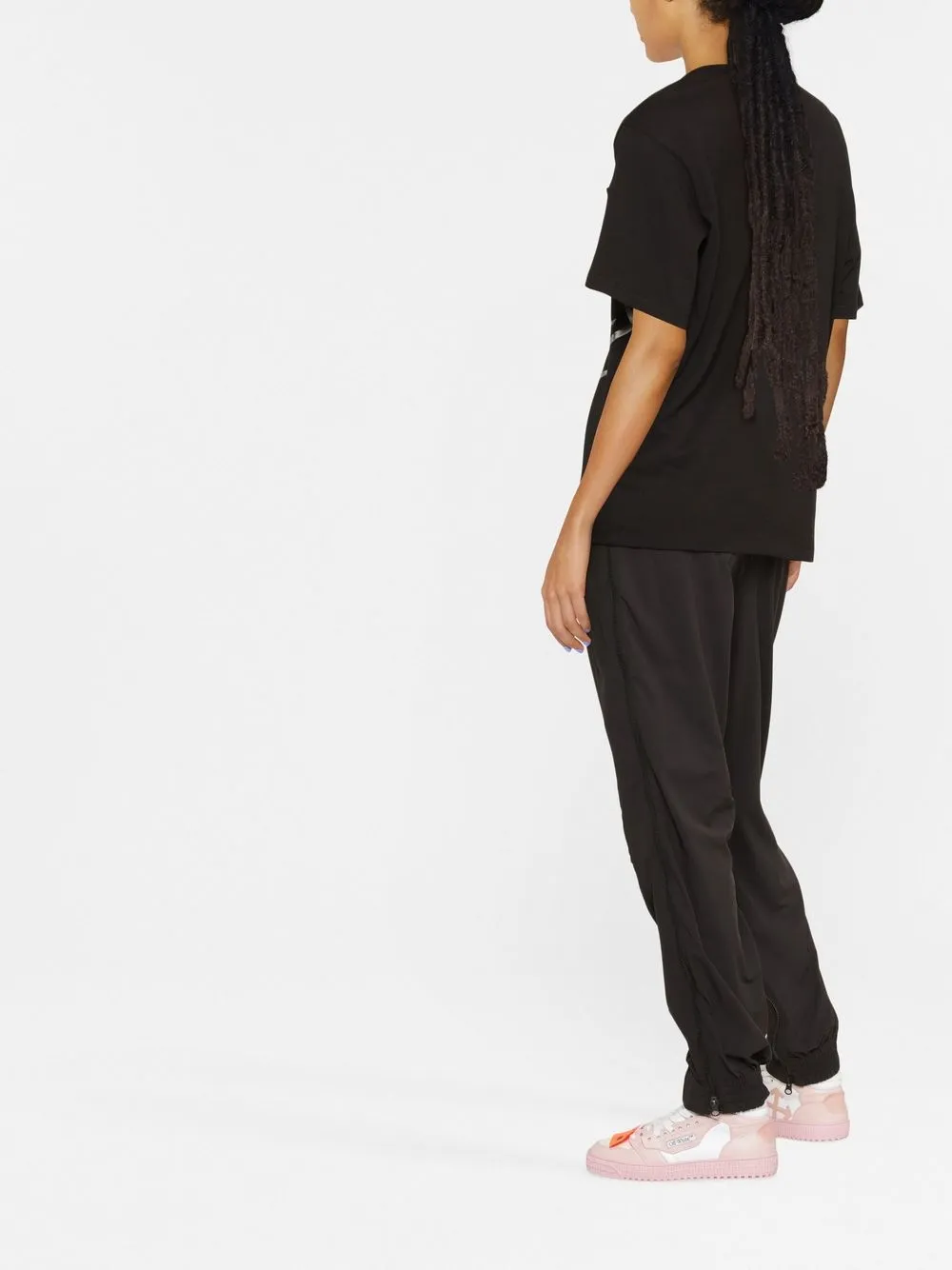 Черный, хлопок, логотип спереди, круглый вырез и короткие рукава.