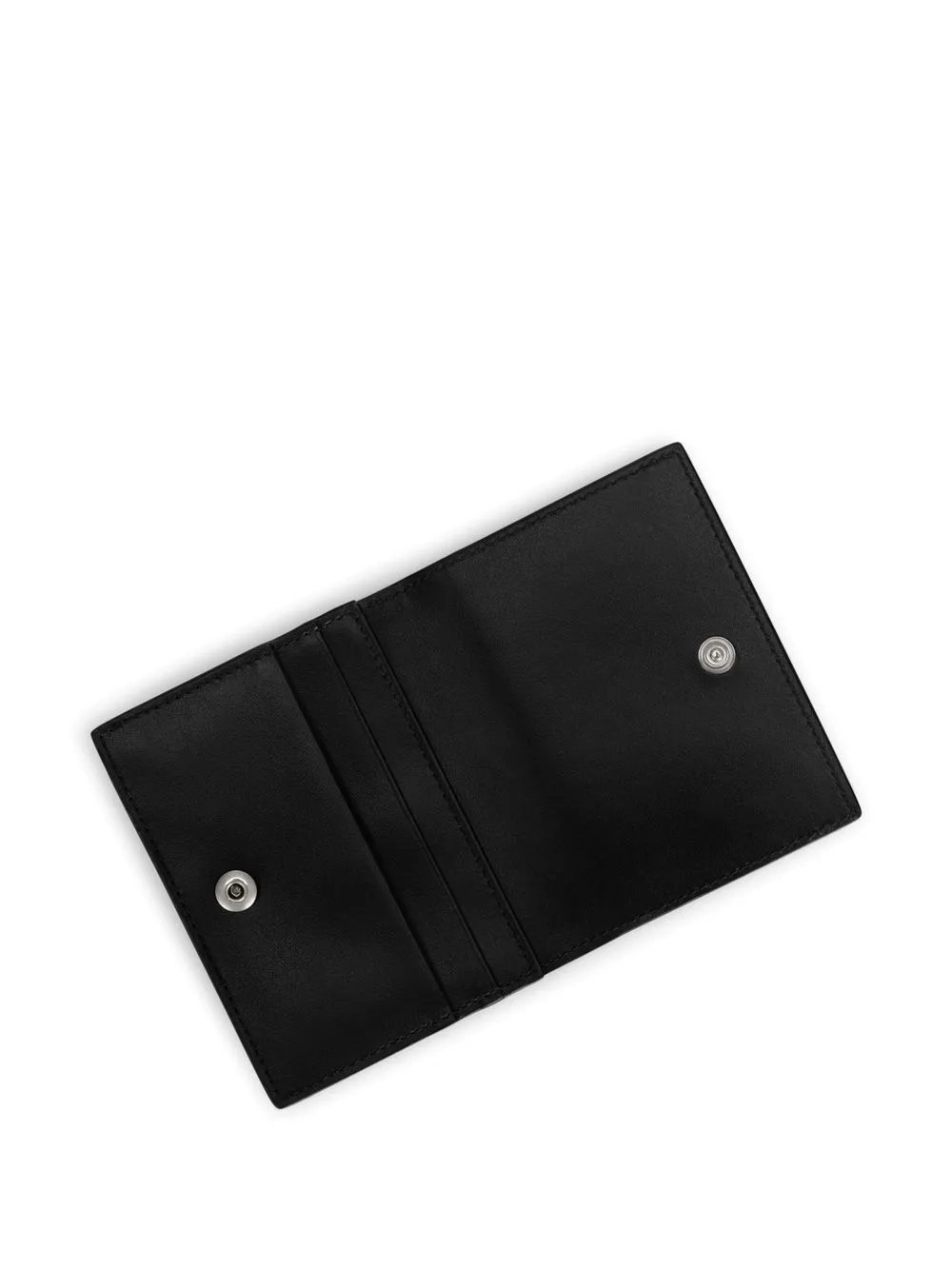 Черный, телячья кожа, нашивка с логотипом спереди, декоративные складки, застежка на кнопках и внутренние отделения для карт.