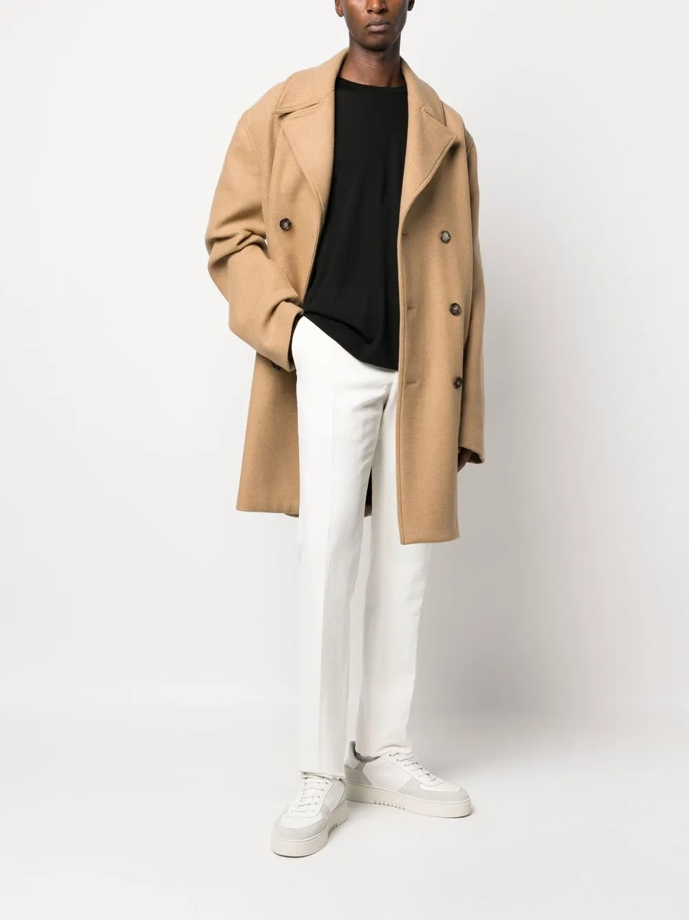 Черный, необработанная шерсть, круглый вырез, длинные рукава и прямой подол.