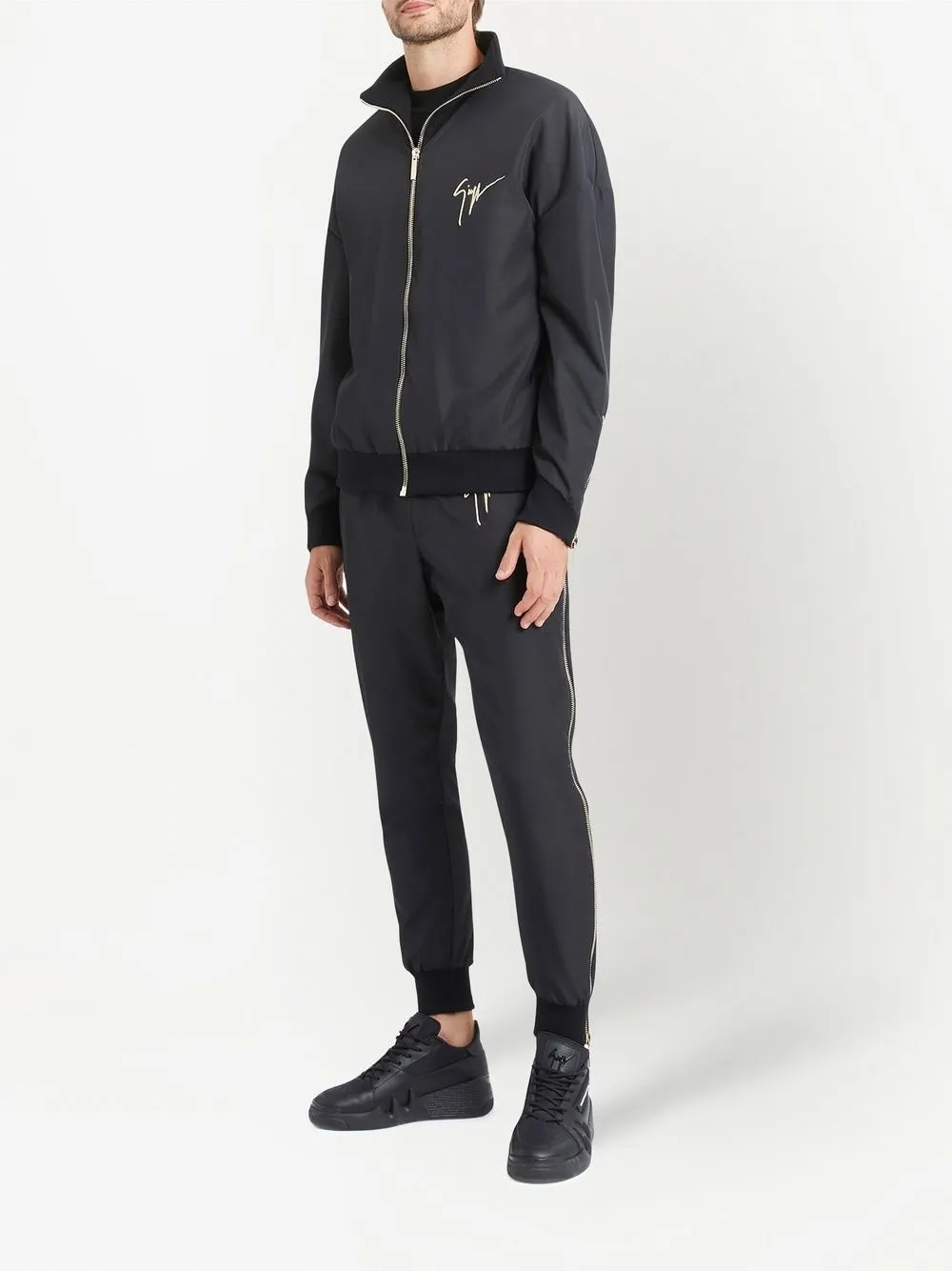 Бомбер на молнии с вышитым логотипом Giuseppe Zanotti, черный