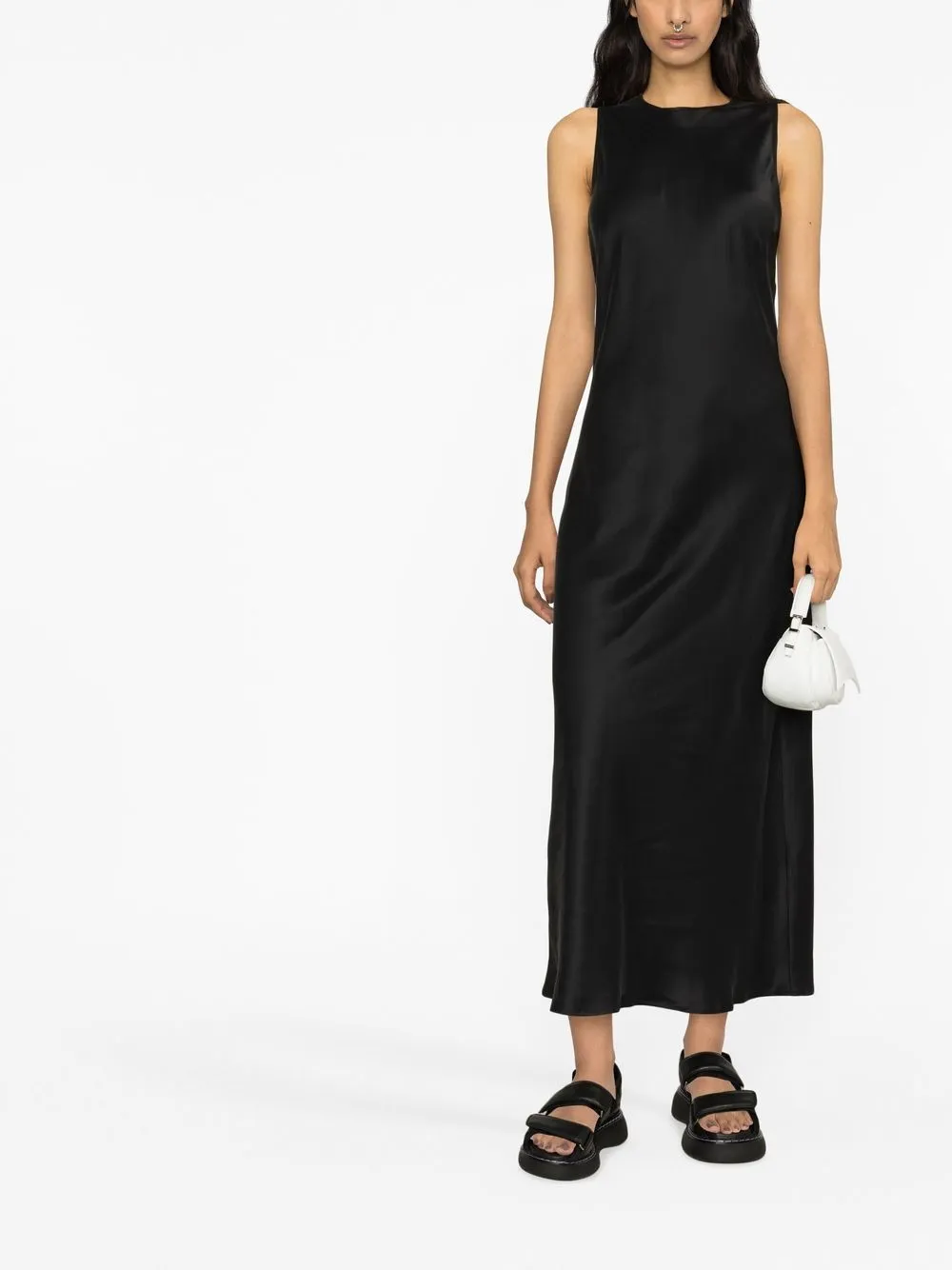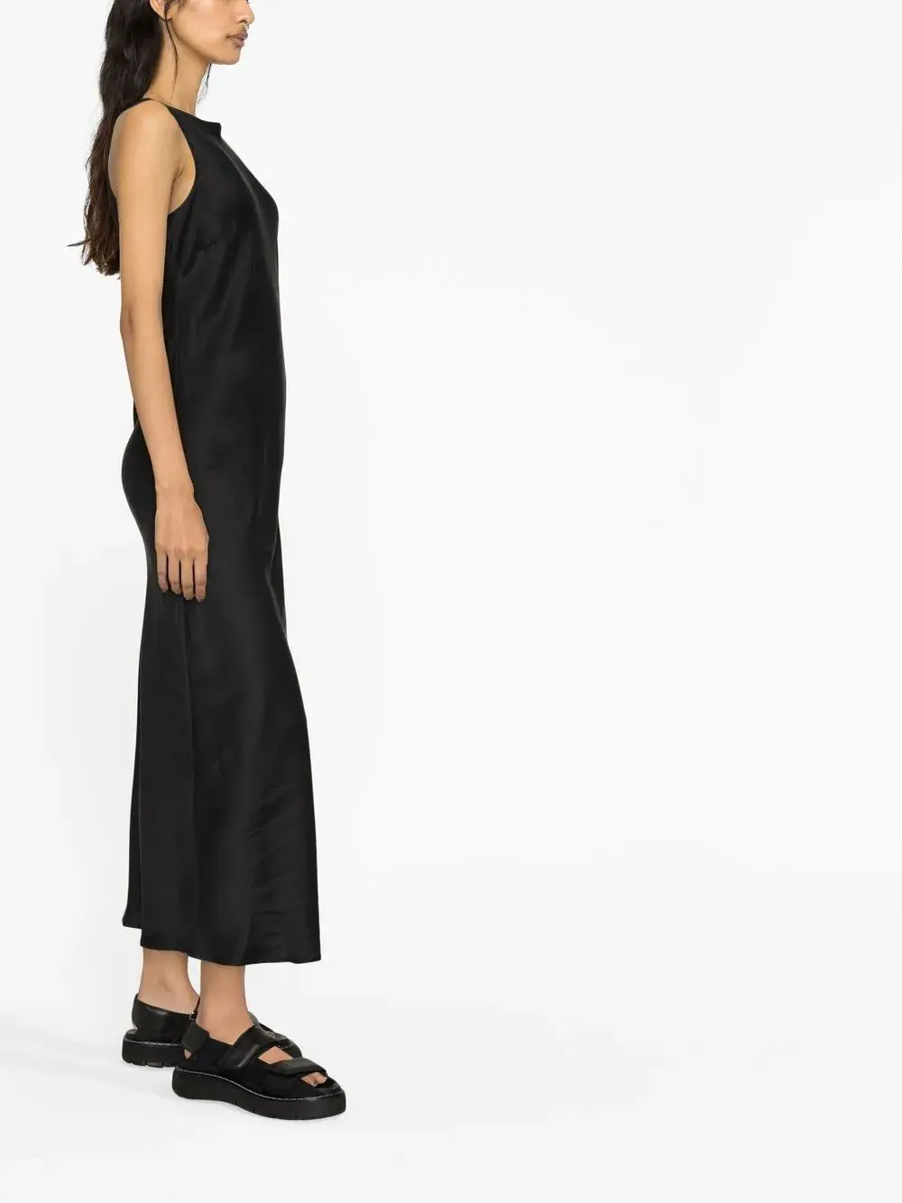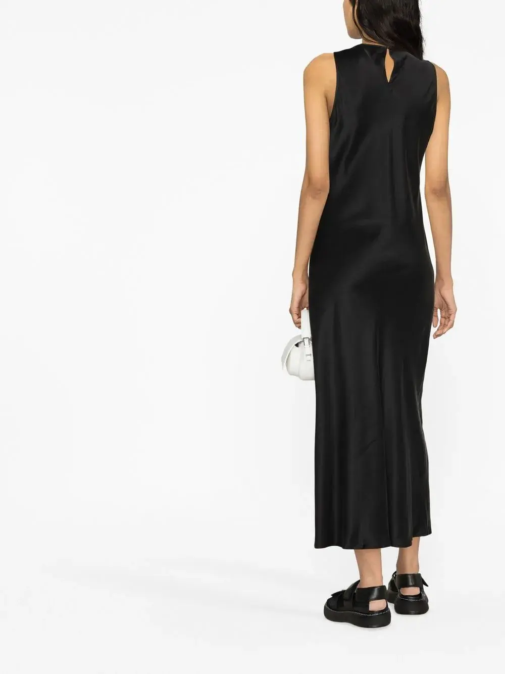 Черный, шелк, без рукавов, круглый вырез, потайная застежка сзади и длинная модель.