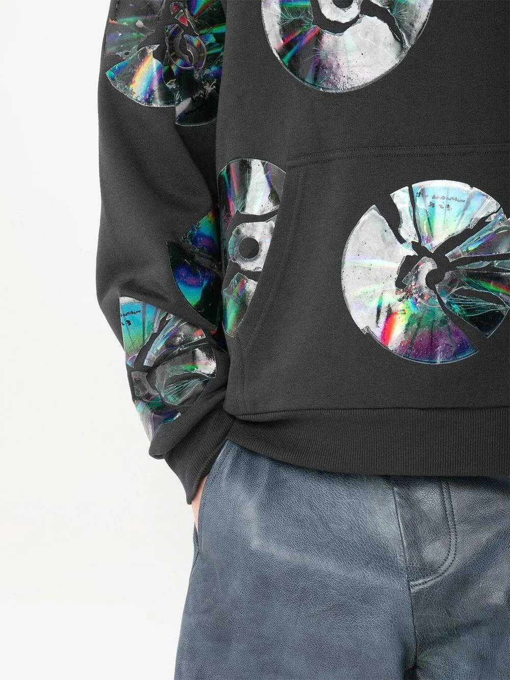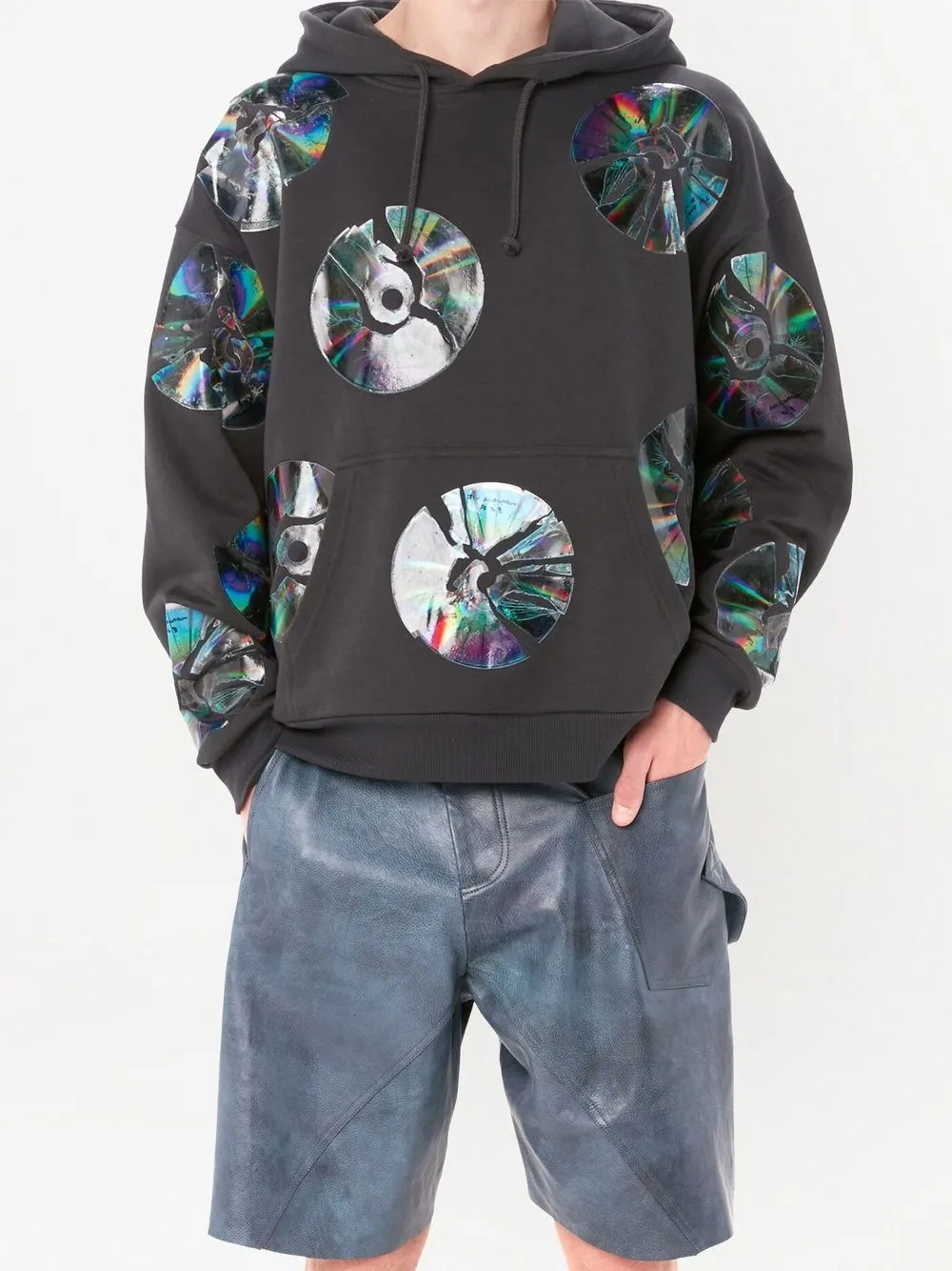 Угольно-серый, органический хлопок, сплошной графичный принт, накладной карман спереди, затягивающийся на шнурок капюшон и эластичные манжеты. Ответственный выбор: