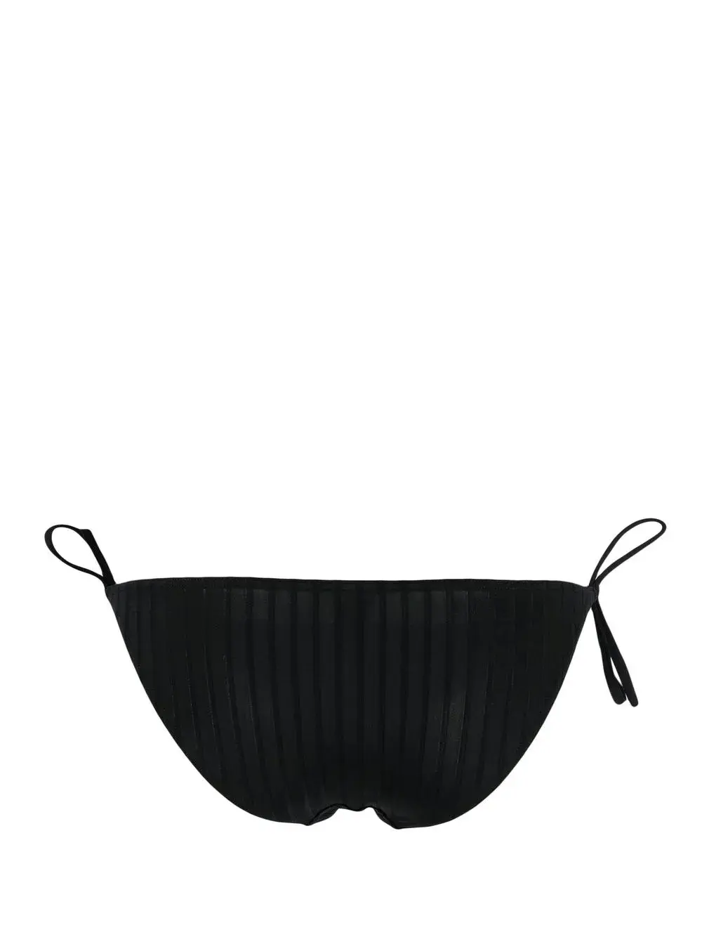 Черный, детали в рубчик, завязки по бокам и средняя посадка. Пожалуйста, примеряйте купальники и пляжные шорты только поверх собственного белья.