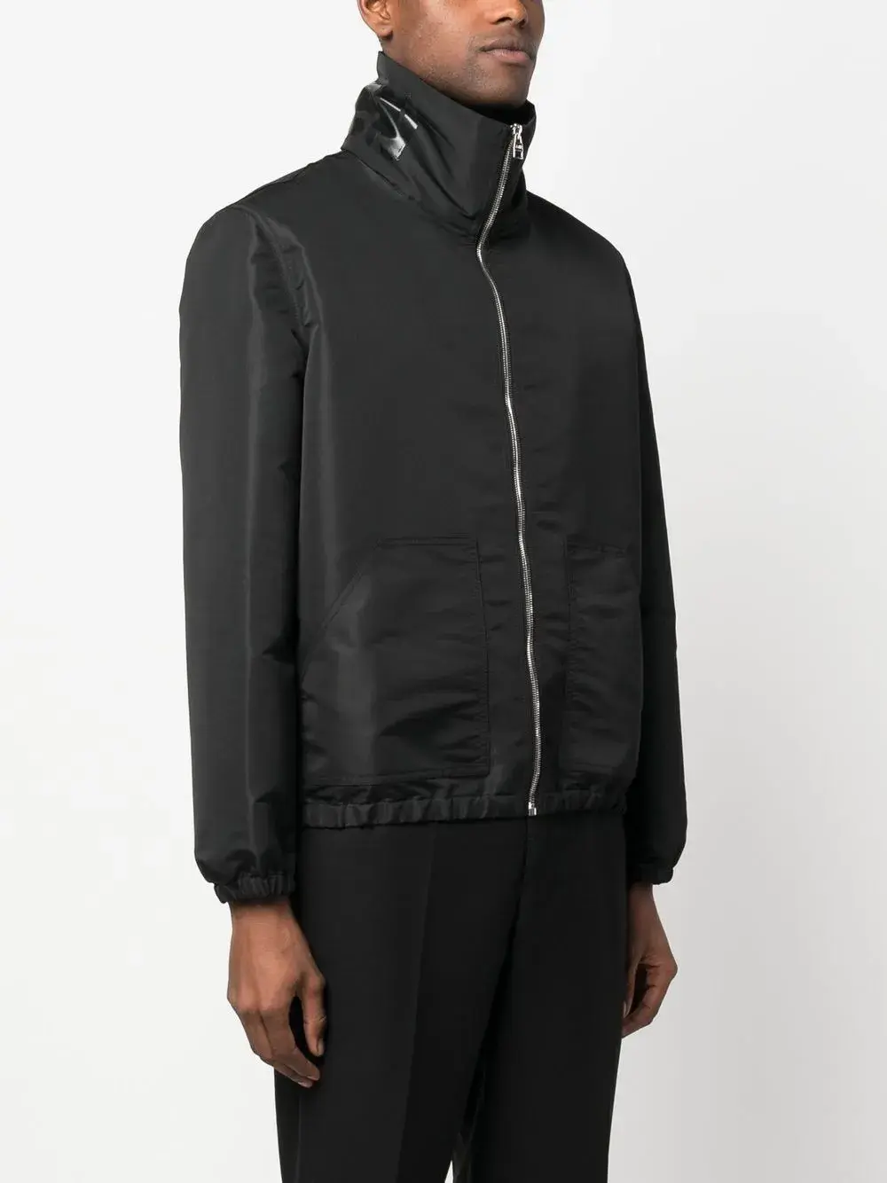 Черный, знаковый принт Graffiti , высокий воротник, застежка на молнии спереди, два кармана по бокам, эластичные манжеты, эластичный подол, длинные рукава и прямой подол.