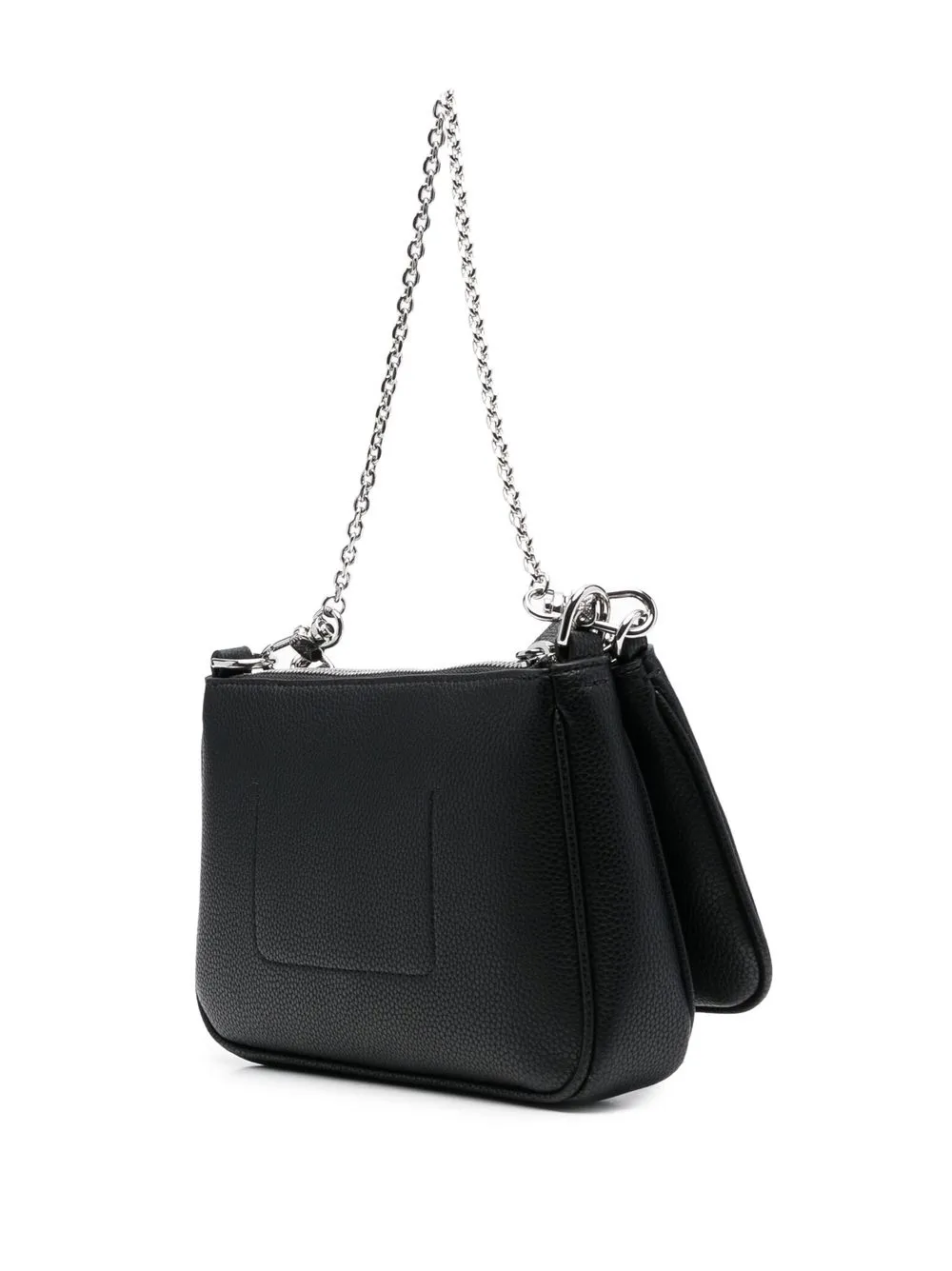 Черный, искусственная кожа, логотип спереди, ремень на плечо с логотипом, цепочка и основное отделение.