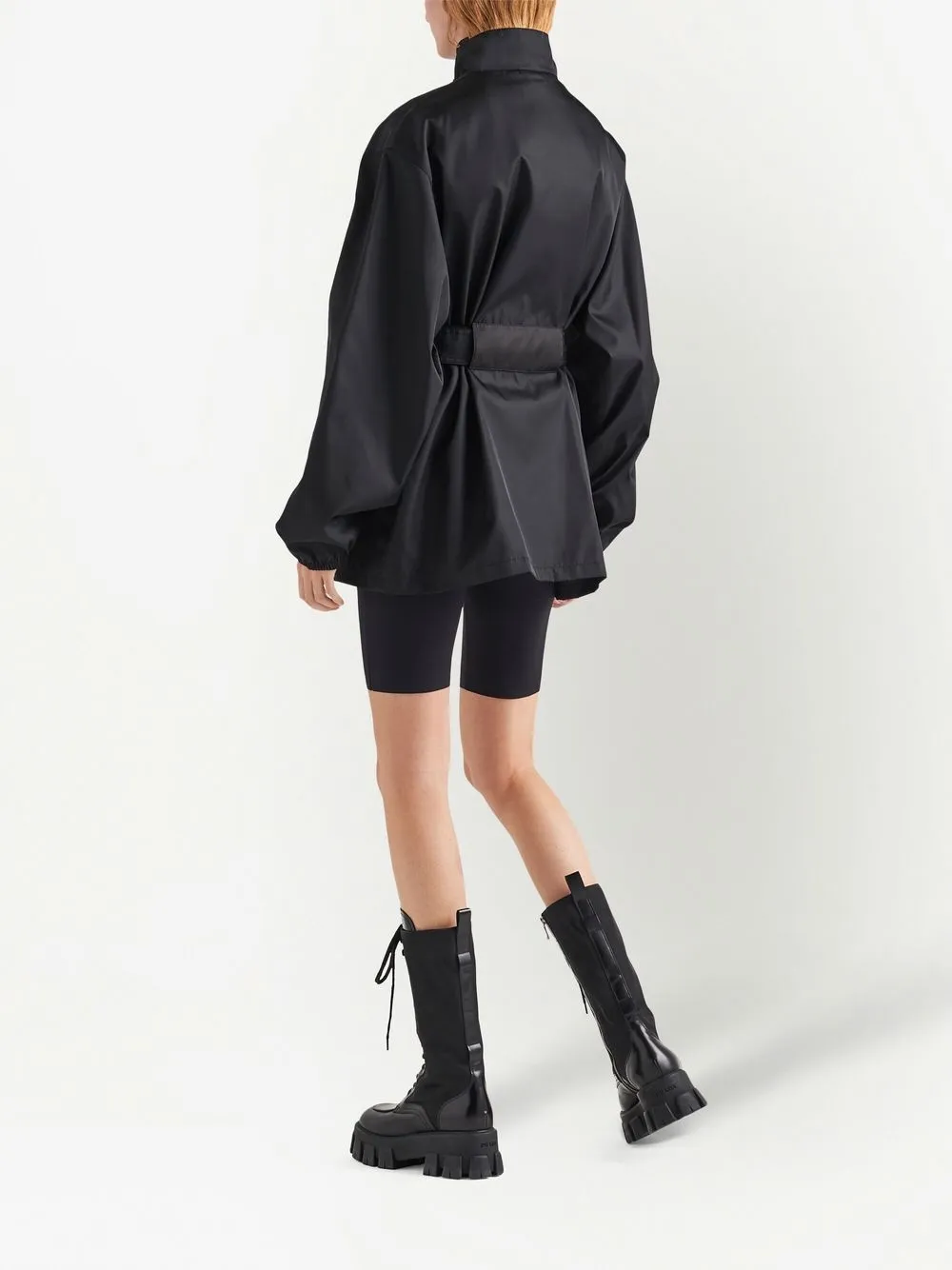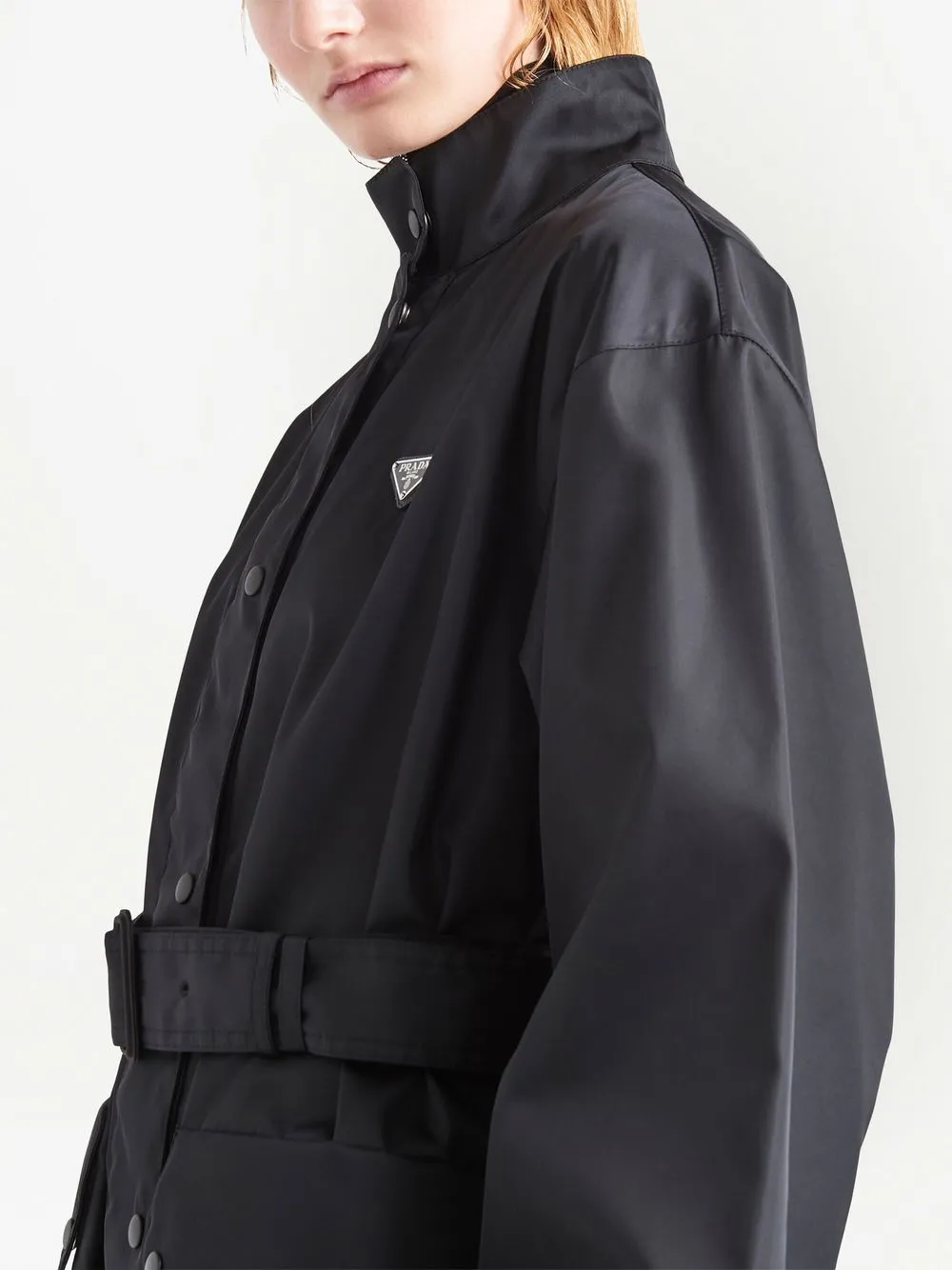 Подробнее о товаре: Черный, переработанный нейлон, треугольный логотип, высокий воротник, застежка на кнопки и молнию спереди, длинные рукава, эластичные манжеты, ремень на талии и два передних кармана с клапанами. Этот товар как минимум на 50% состоит из переработанных или повторно использованных материалов. Узнать больше о том, какие товары получают отметку «Ответственный выбор», можно из материала «Как мы оцениваем экологичность и этичность».