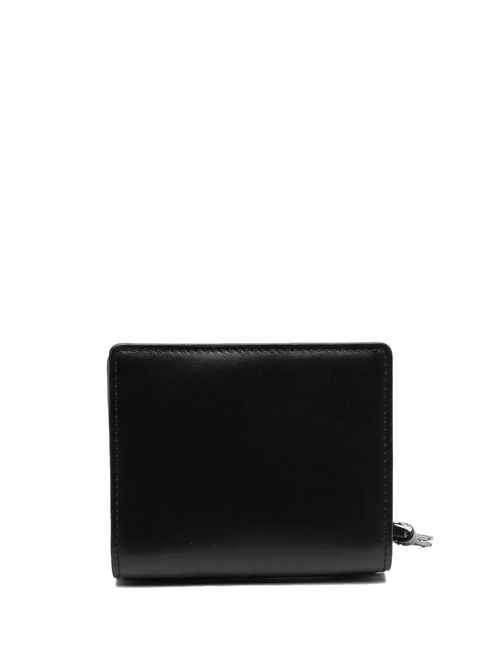Черный, телячья кожа, вышитый логотип спереди, карман на молнии, потайная застежка на кнопках, внутренние отделения для карт и отделение для купюр.