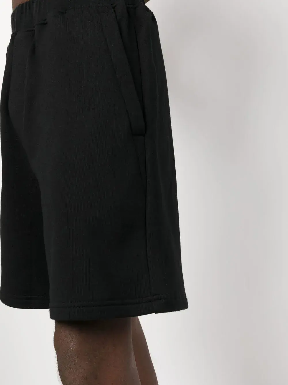 Черный, хлопок, принт с логотипом сзади, эластичный пояс, два прорезных кармана по бокам и длина по колено.