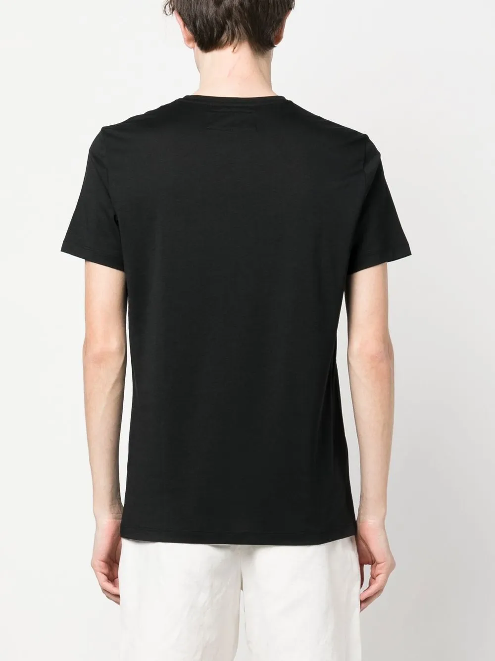 Черный, смесь хлопка и лиоцелла, логотип на подоле, круглый вырез, короткие рукава и прямой подол. Ответственный выбор: Этот товар как минимум на 50% состоит из материалов, которые признаны более безопасными для окружающей среды или сертифицированы независимыми организациями.