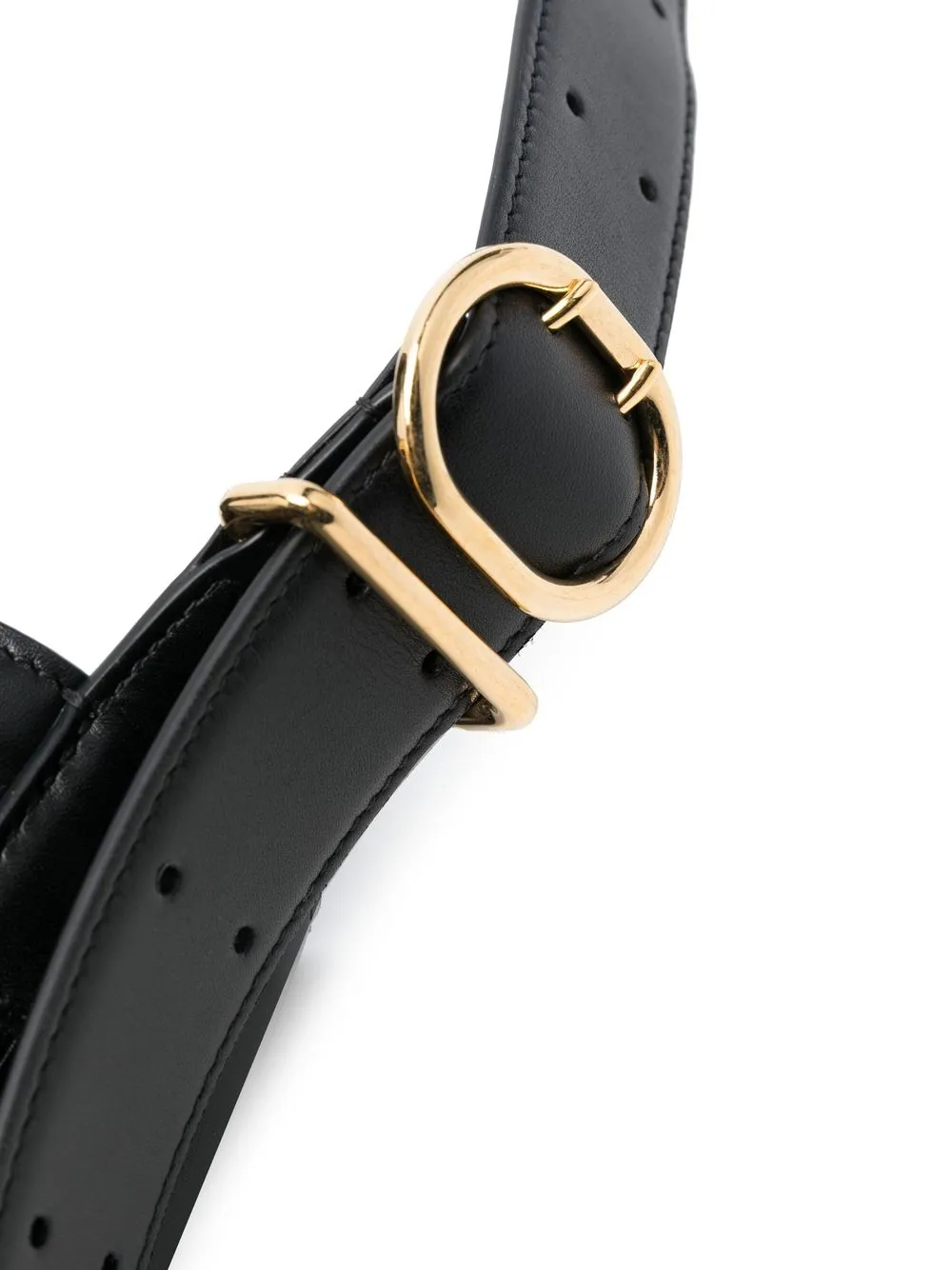 Черный, телячья кожа, логотип спереди, золотистая фурнитура, регулируемый ремень на плечо, дизайн с открытым верхом и основное отделение.