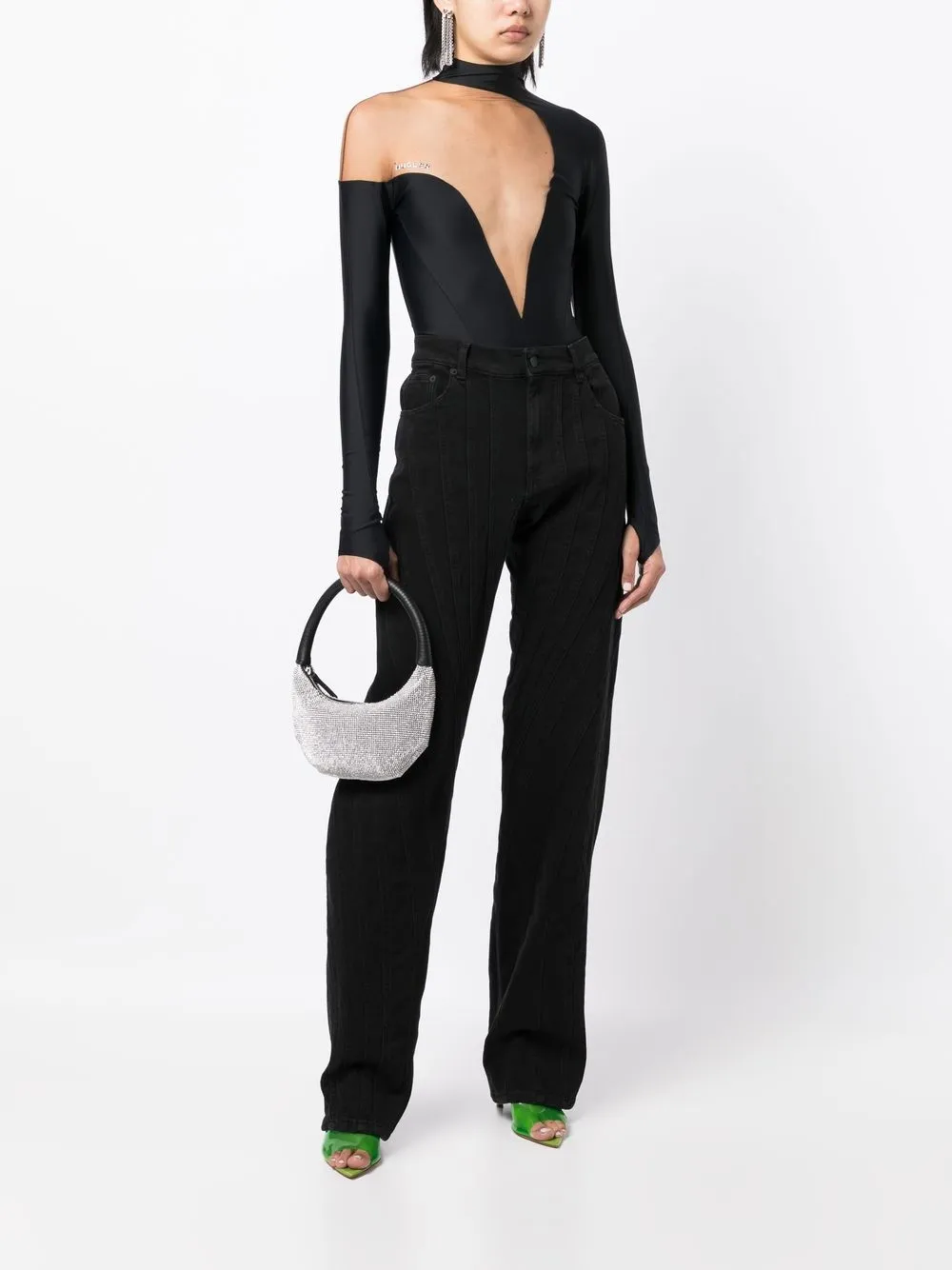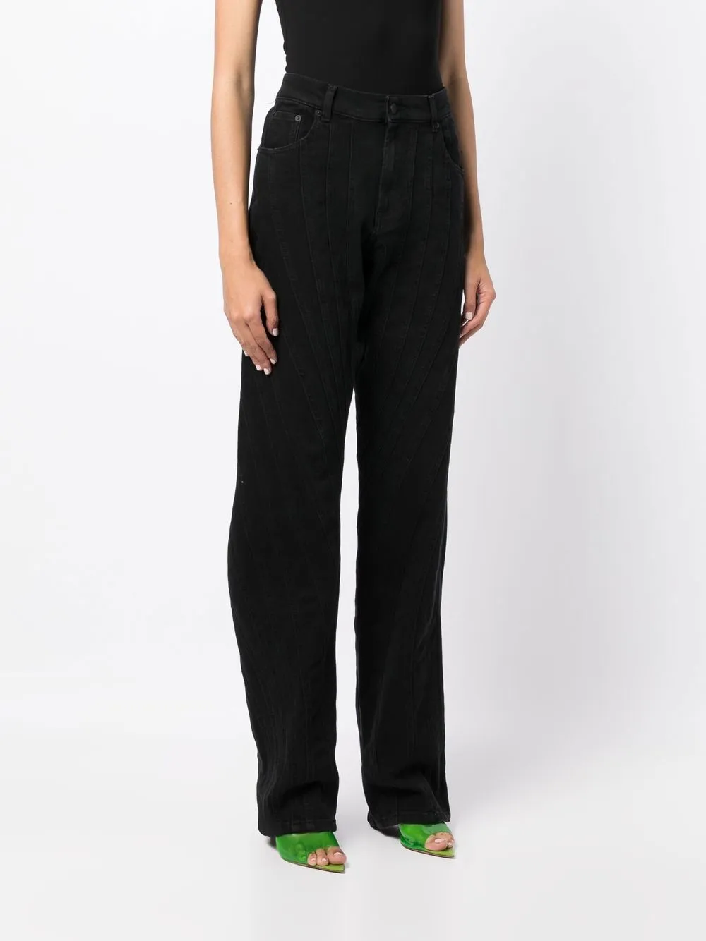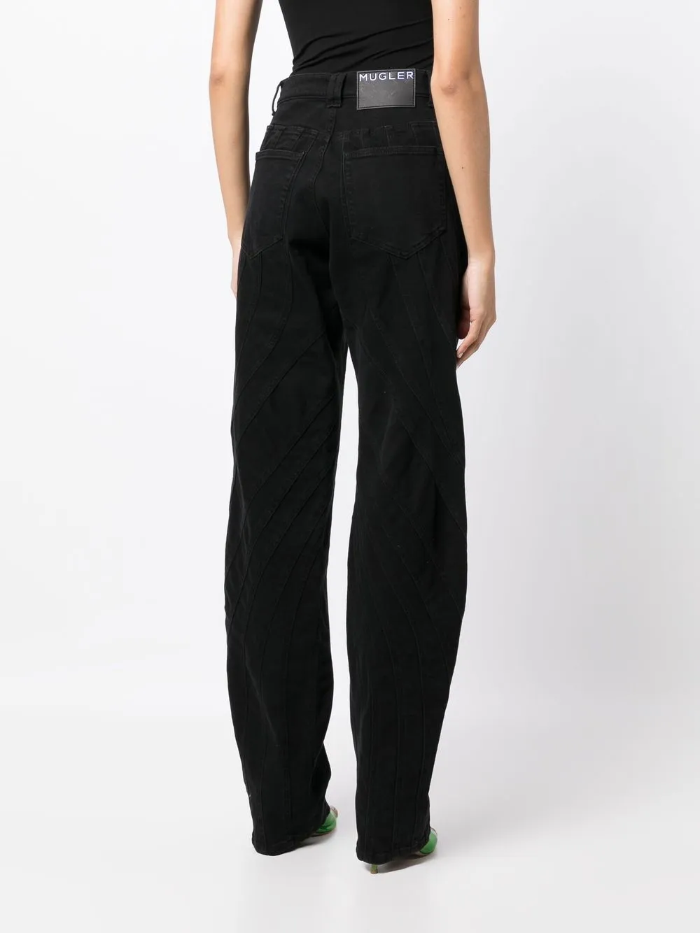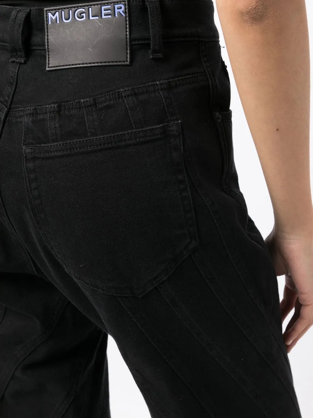 Черный, эластичный хлопок, деним, нашивка с логотипом сзади, швы, крой бойфренд, завышенная талия, пять карманов, потайная застежка на молнии и пуговицах и петли для ремня.