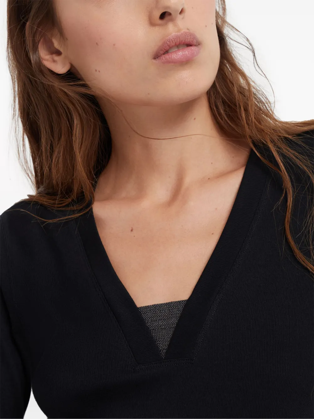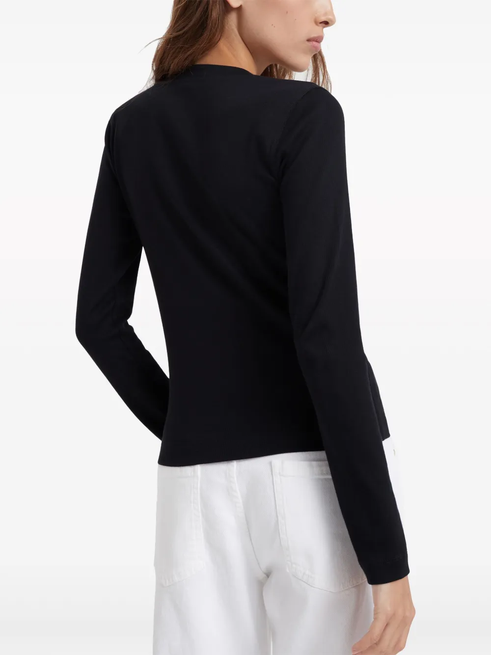 Черный, смесовый хлопок, знаковая отделка Monili, V-образный вырез и длинные рукава.