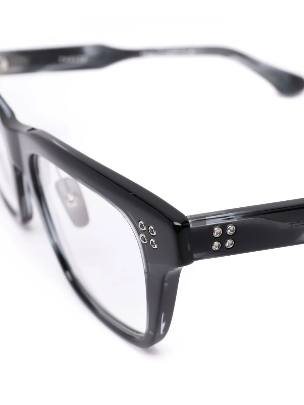 Черный, ацетат, мраморный узор, прямоугольная оправа, прозрачные линзы, прямые дужки, дужки с закругленными концами и носоупоры. В комплект входит защитный чехол для очков. Обратите внимание, что на FARFETCH продаются оправы с линзами без диоптрий.