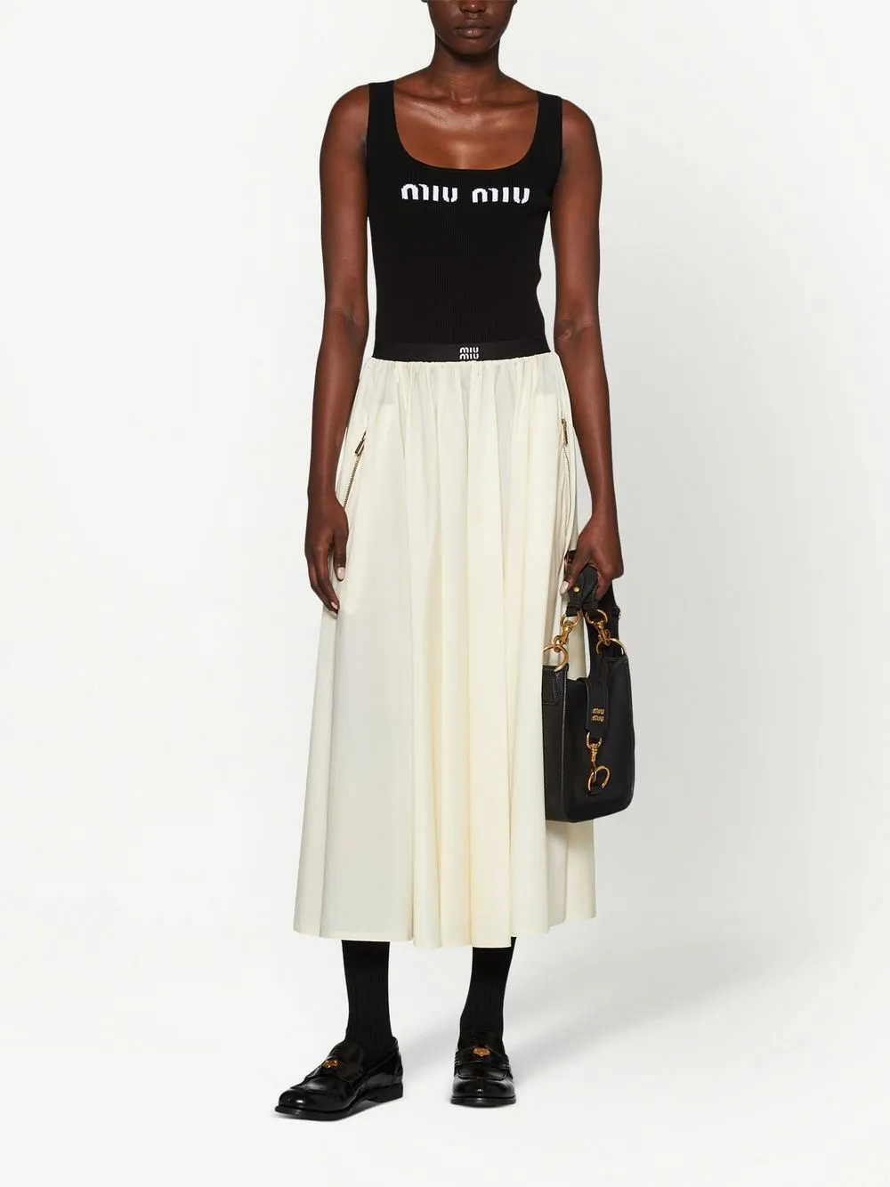Топ в рубчик с логотипом MIU MIU, черный