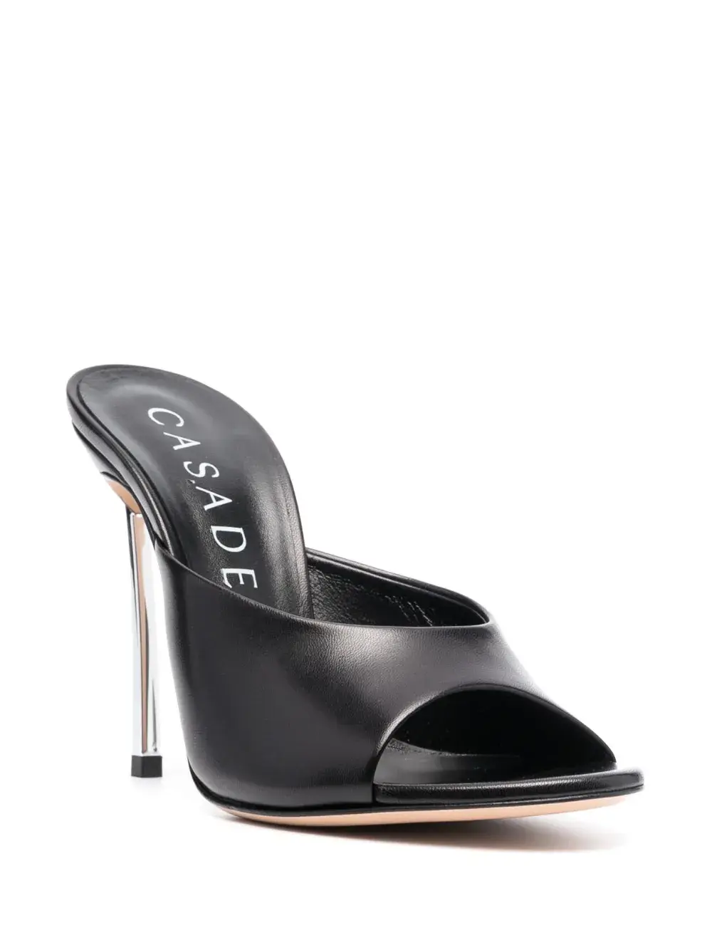 Черный, телячья кожа, открытый носок, кожаная стелька с логотипом, каблук на высокой шпильке и модель без застежки.
