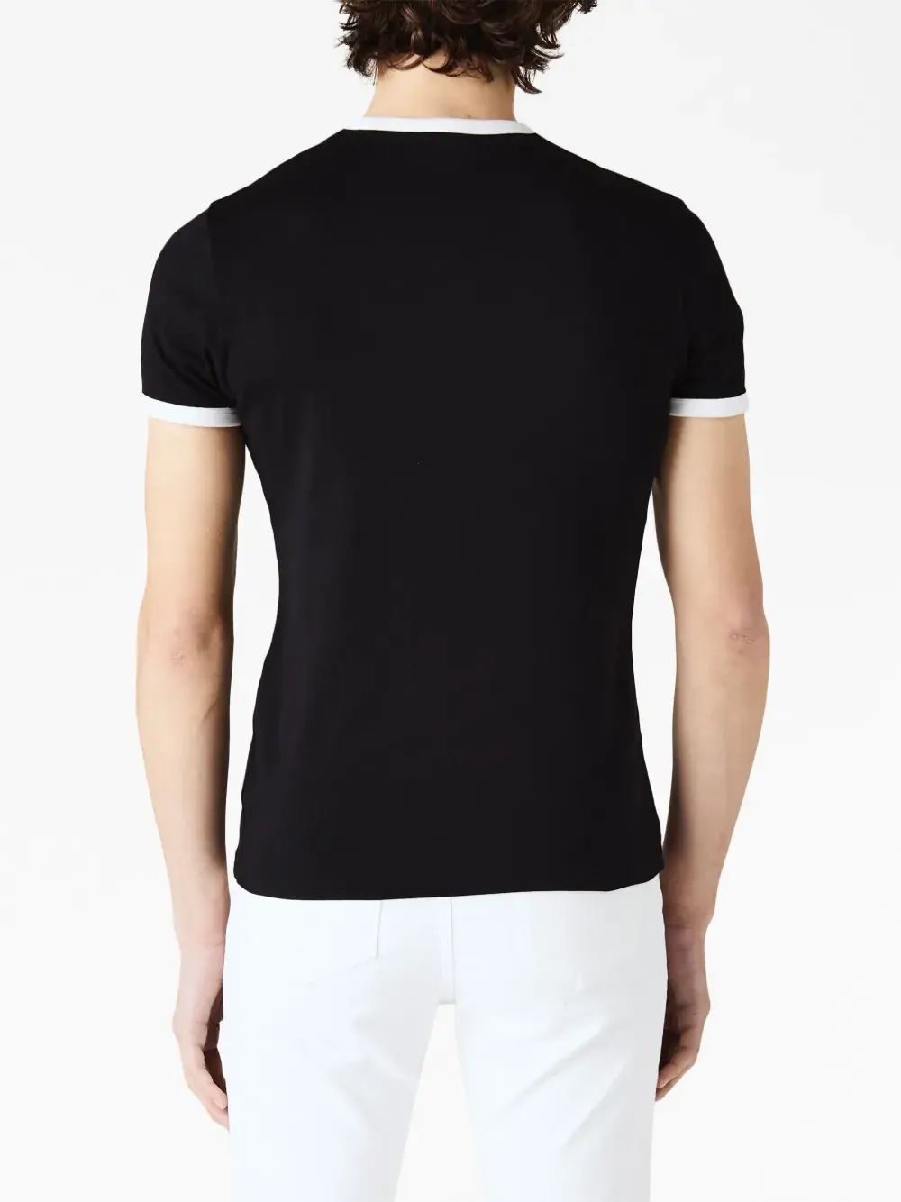 Черный/белый, хлопок, нашивка с логотипом на груди, контрастная отделка, круглый вырез, короткие рукава и прямой подол.