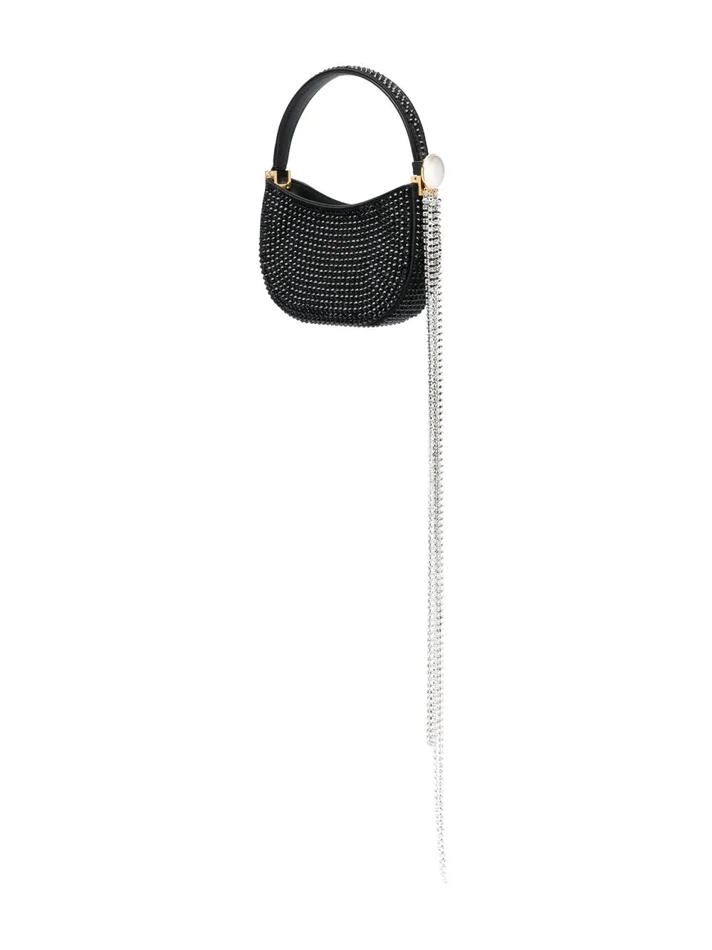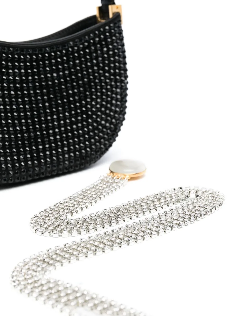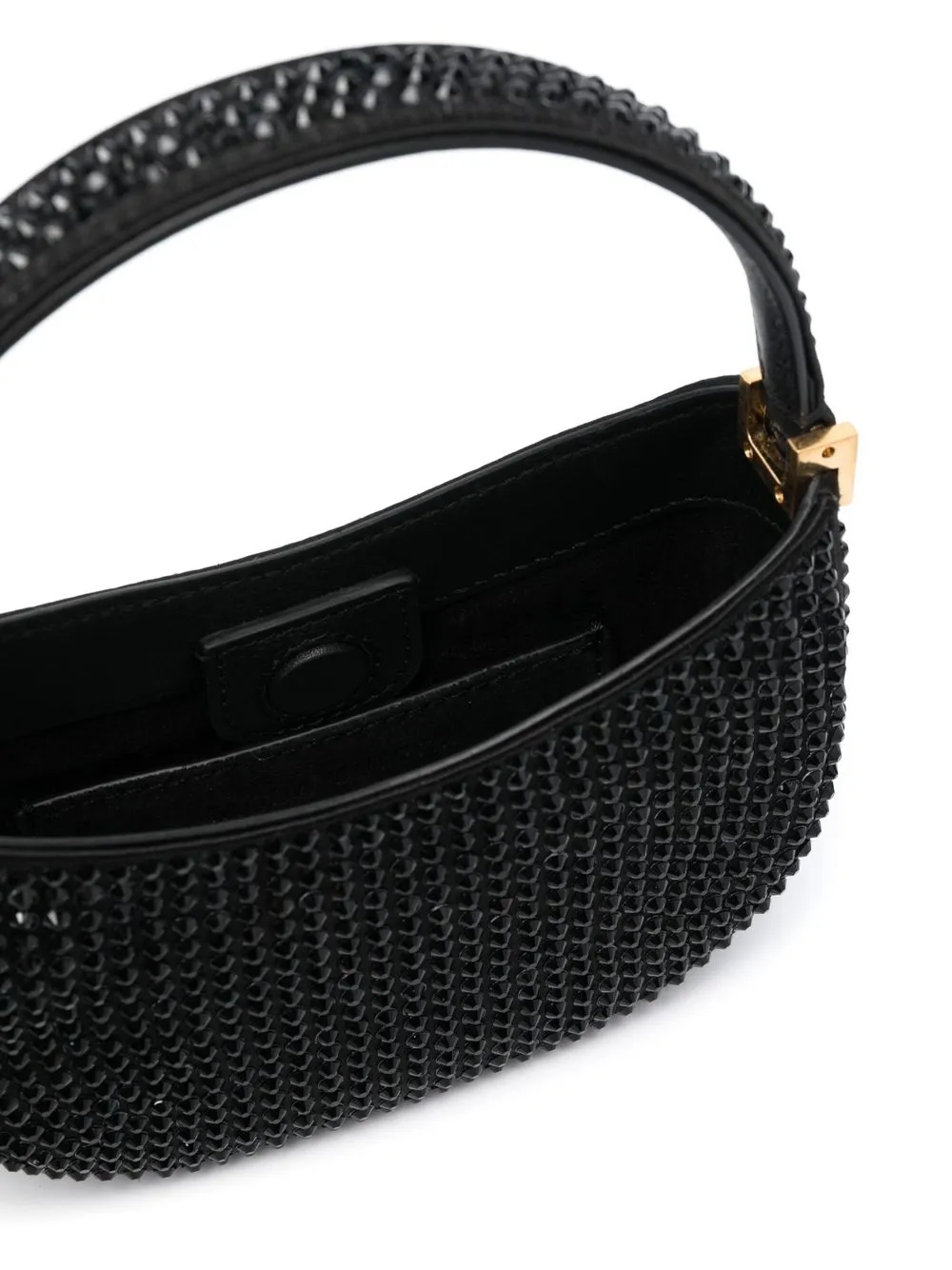 Черный, декор из кристаллов, магнитная застежка, верхняя ручка и внутренний прорезной карман.