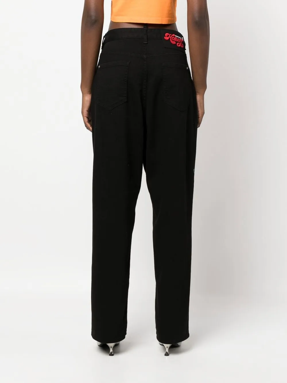 Черный, смесовый хлопок, маленькая подвеска с логотипом, нашивка с логотипом сзади, петли для ремня, ширинка на пуговицах и пять карманов.