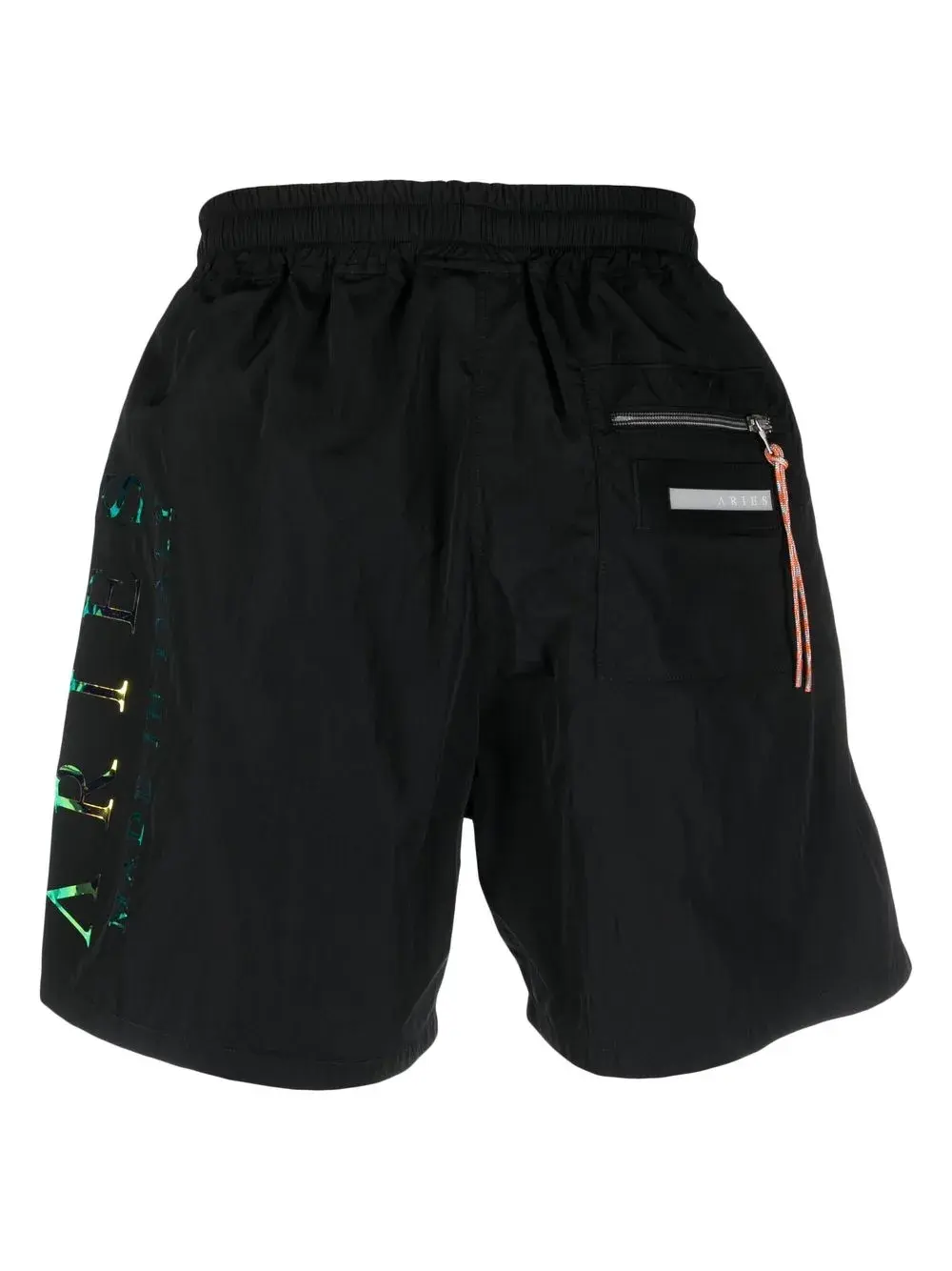 Черный/разноцветный, длина выше колена, эластичный пояс, застежка на молнии спереди, принт с логотипом и нашивка с логотипом спереди.