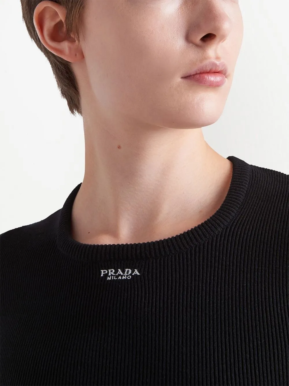 Джемпер в рубчик с вышитым логотипом Prada, черный