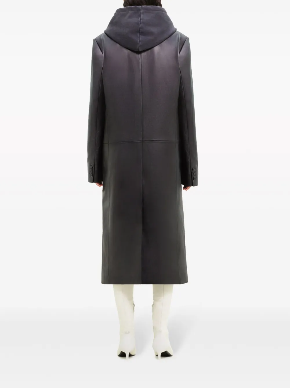 Кожаное пальто строгого кроя Courrèges, черный