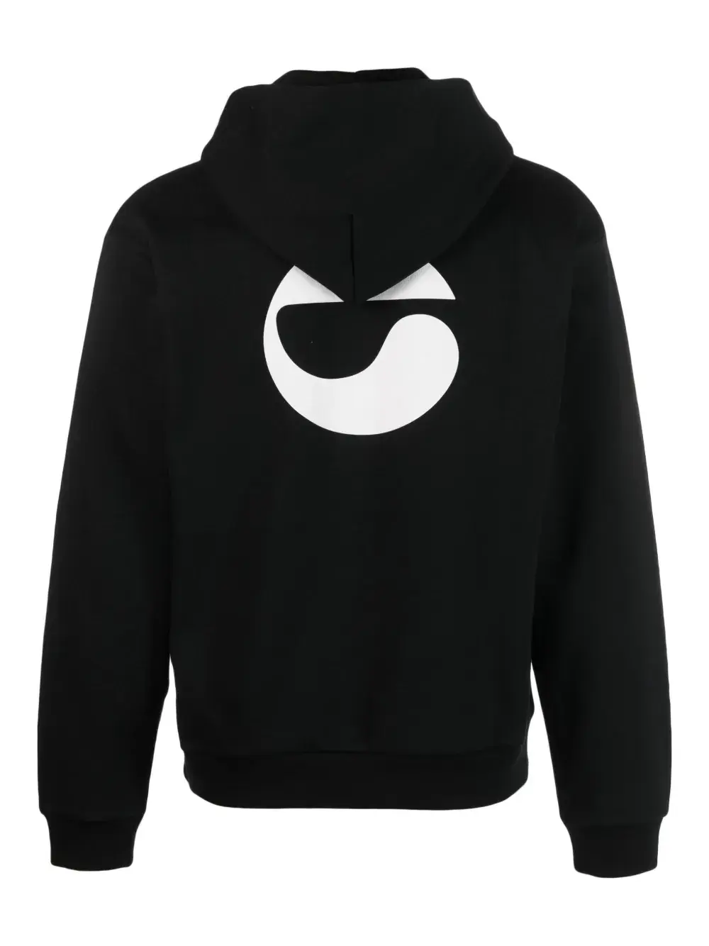 Черный, принт с логотипом на груди, принт с логотипом сзади, классический капюшон и длинные рукава.