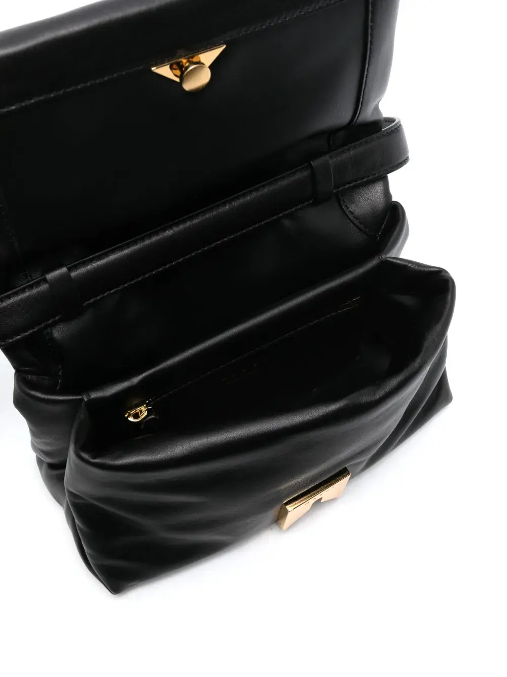 Черный, телячья кожа, смесовый хлопок, дутый дизайн, откидной клапан на магнитной застежке, съемный ремень на плечо, основное отделение, внутренний карман на молнии.