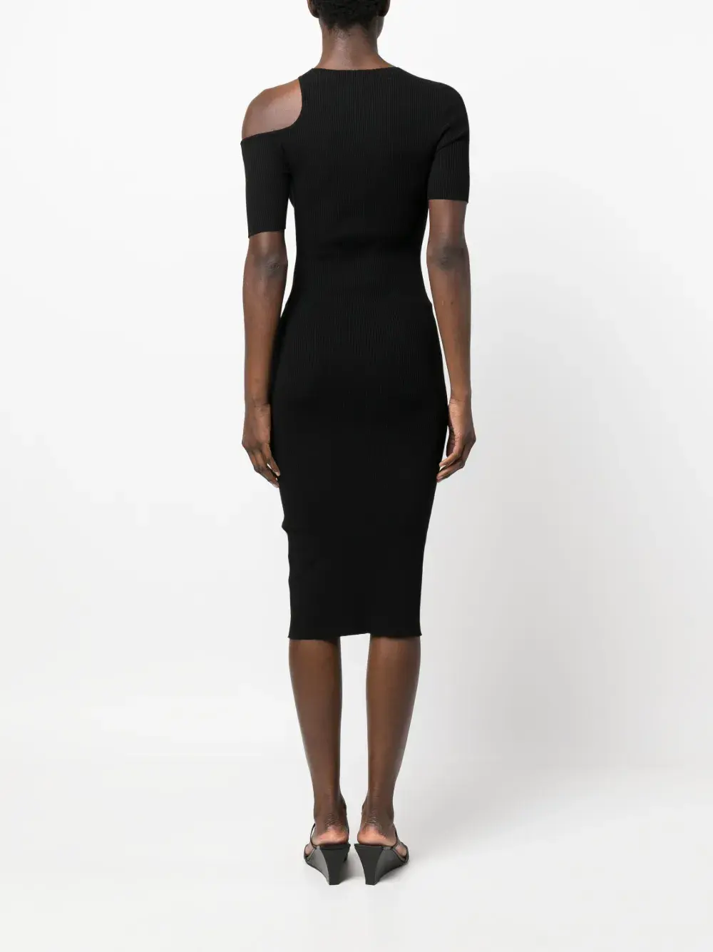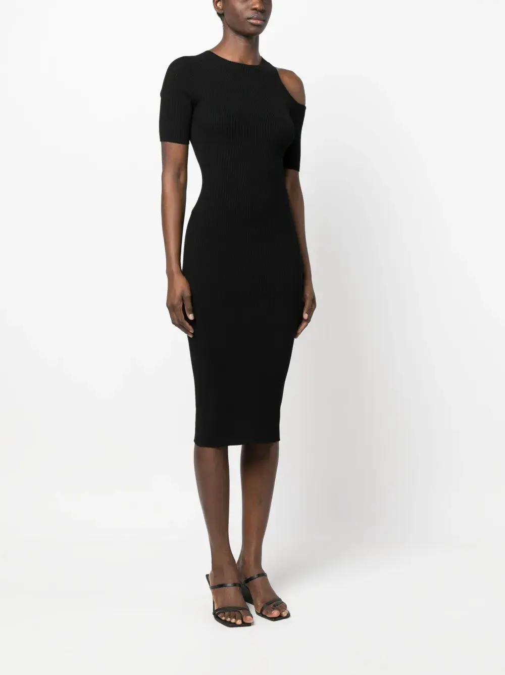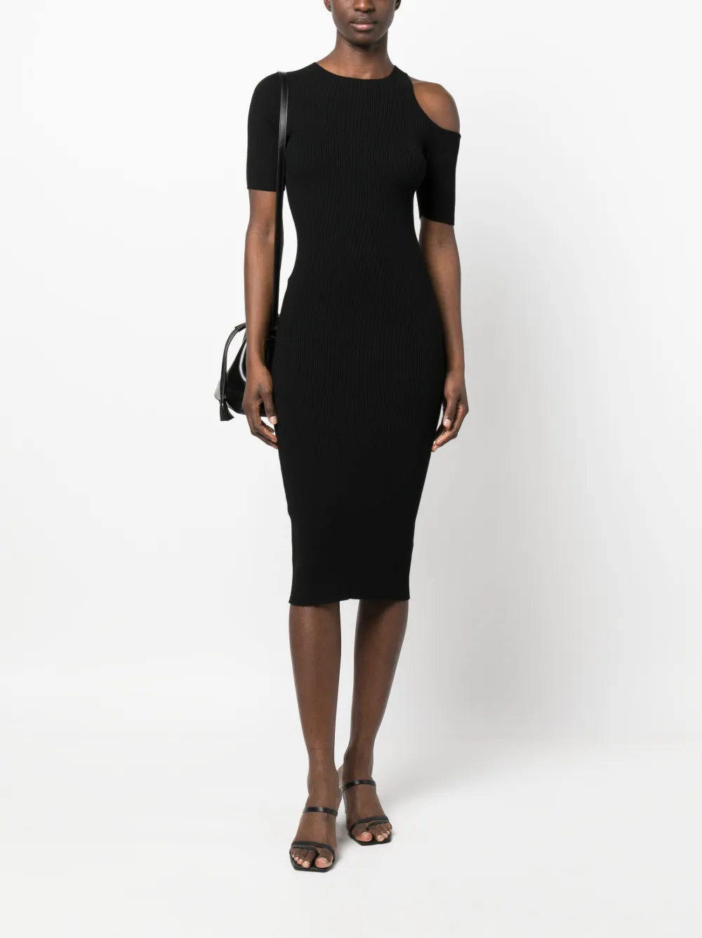 Подробнее о товаре: Черный, вискоза FSC, трикотаж в рубчик, открытые плечи, круглый вырез, короткие рукава, облегающий крой и длина миди. Этот товар как минимум на 50% состоит из сертифицированной древесины. Это гарантирует, что сырье заготовлено в ответственных лесных хозяйствах, которые минимизируют вырубку лесов, обеспечивают справедливую заработную плату и условия труда, сохраняют биоразнообразие и уважают права локальных сообществ. Узнать больше о том, какие товары получают отметку «Ответственный выбор», можно здесь.