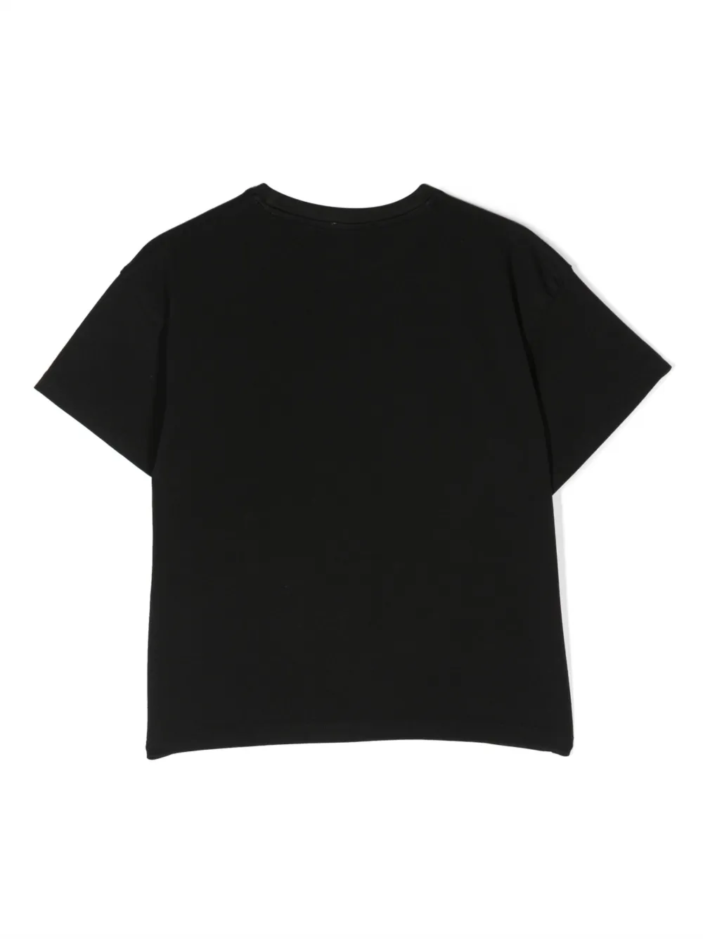 Черный, стрейчевый органический хлопок, принт с надписью, круглый вырез, короткие рукава и прямой подол. Узнать больше о том, какие товары получают отметку «Ответственный выбор», можно из материала «Как мы оцениваем экологичность и этичность».