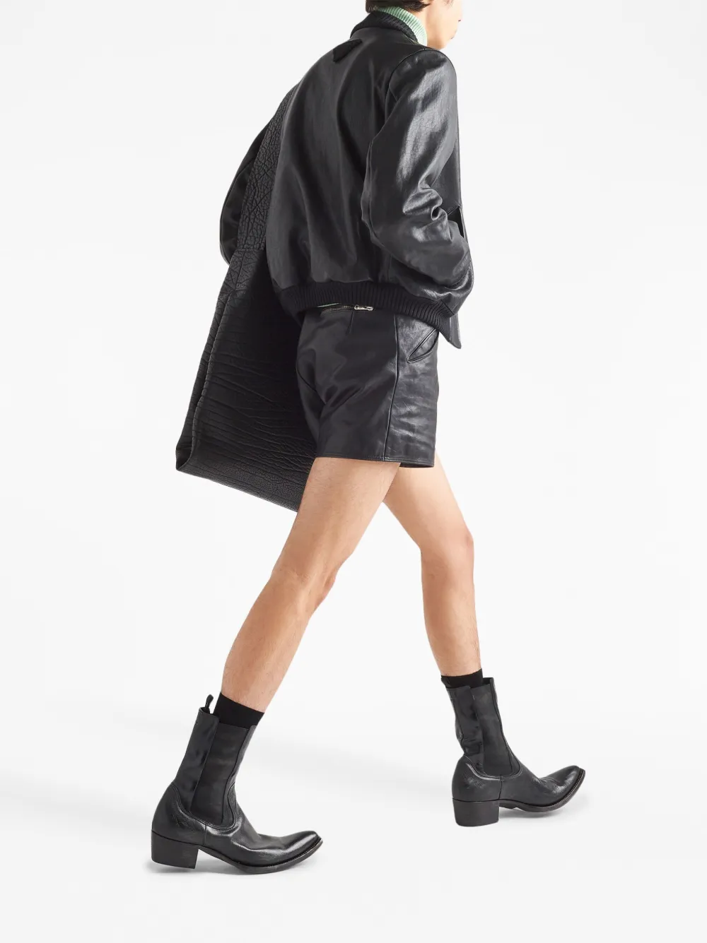 Кожаный бомбер Prada, черный