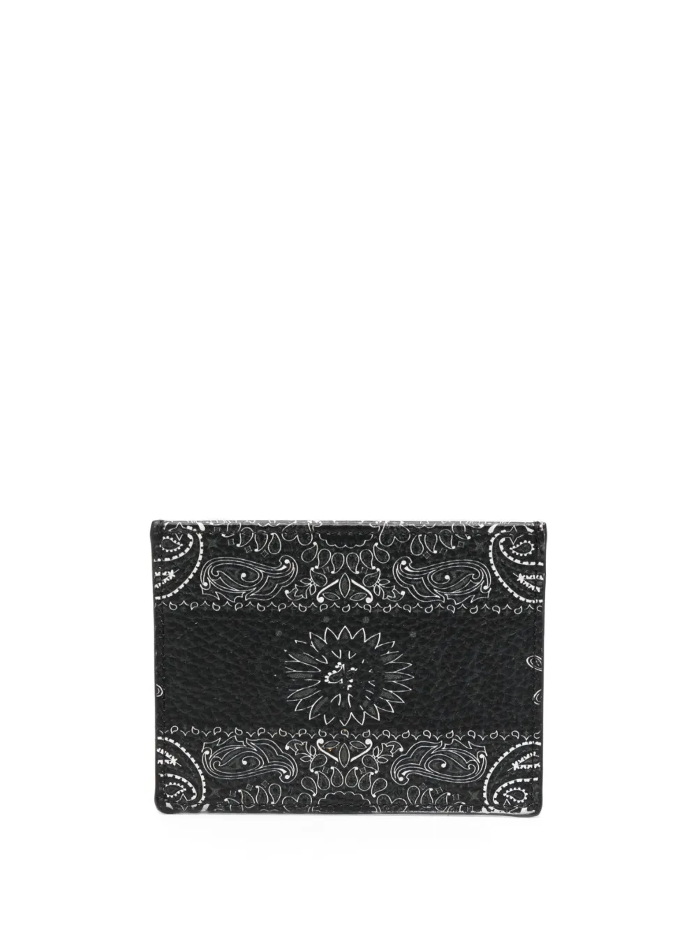 Черный, телячья кожа, логотип спереди, принт пейсли, отделения для карт и основное отделение.