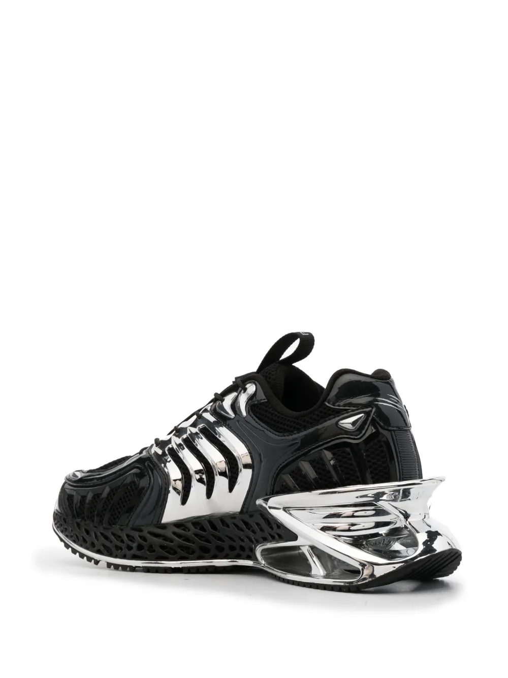 Черный, золотистый, эффект металлик, сетчатые вставки, закругленный носок, шнуровка спереди, петля для подтягивания на язычке и массивная резиновая подошва.