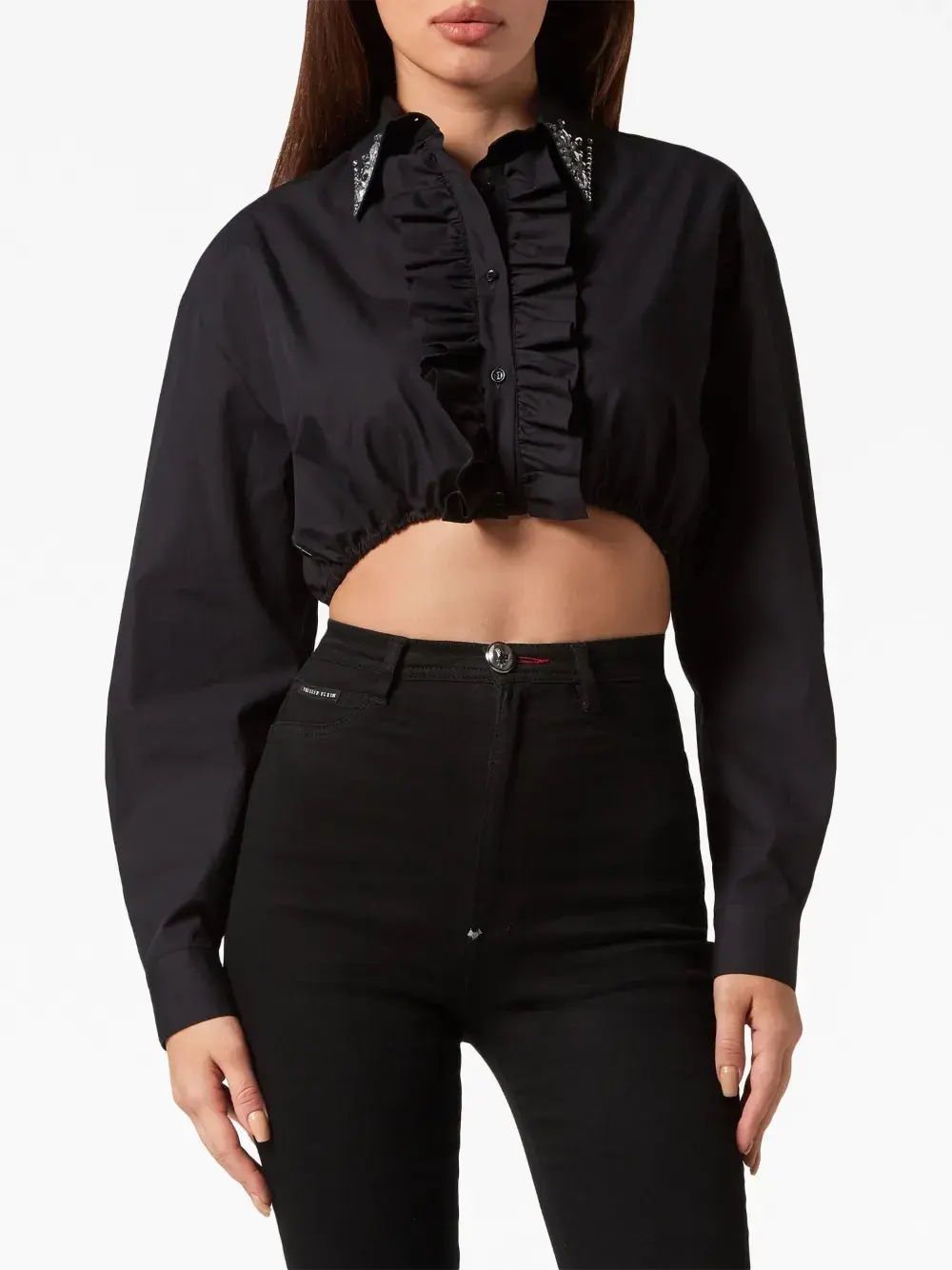 Укороченная рубашка с оборками Philipp Plein, черный 48 206₽