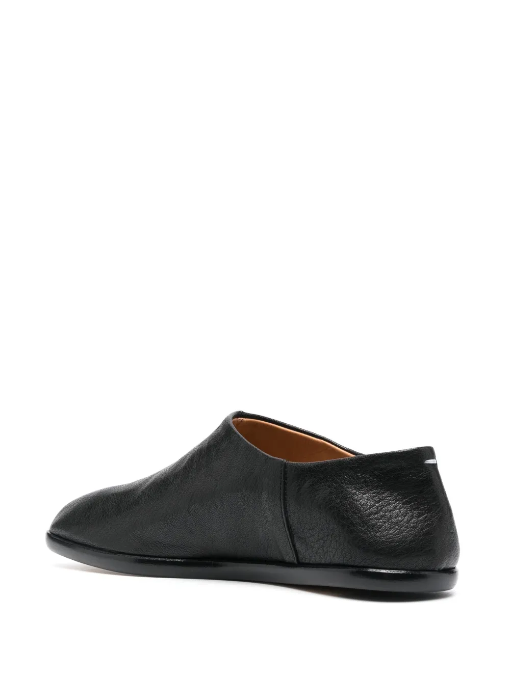 Черный, телячья кожа, знаковый раздвоенный носок Tabi, модель без застежки, стелька с логотипом и плоская подошва.