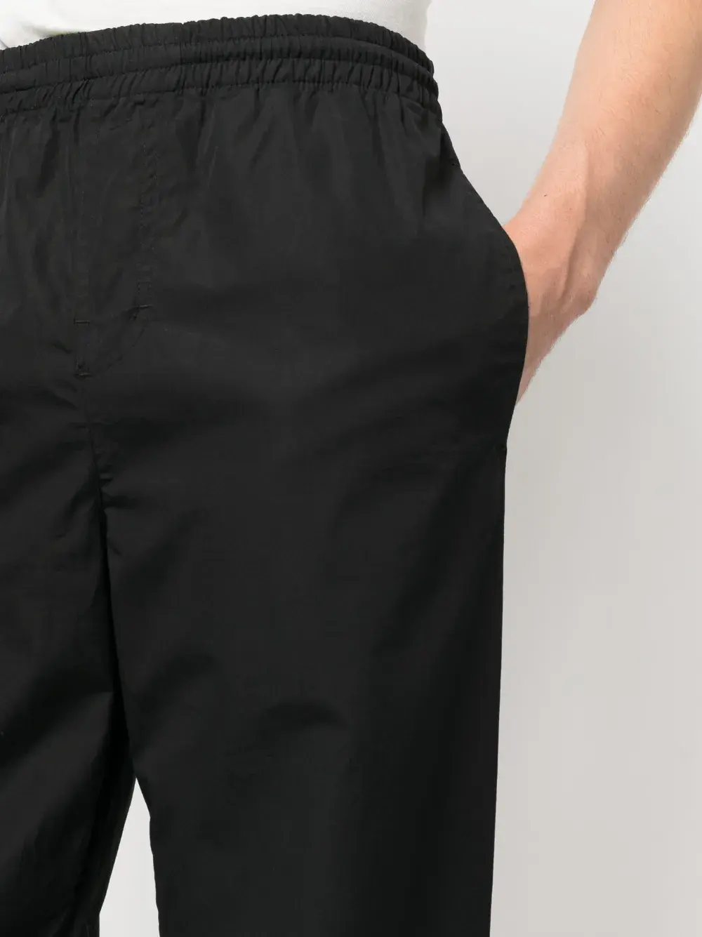 Черный, хлопок, эластичный пояс, прямой крой и накладной карман сзади.