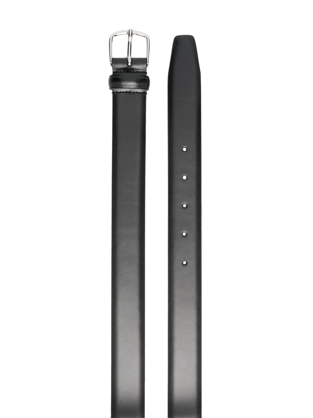 Черный, телячья кожа, серебристая фурнитура, регулируемый дизайн, застежка на пряжке и прямоугольные края.