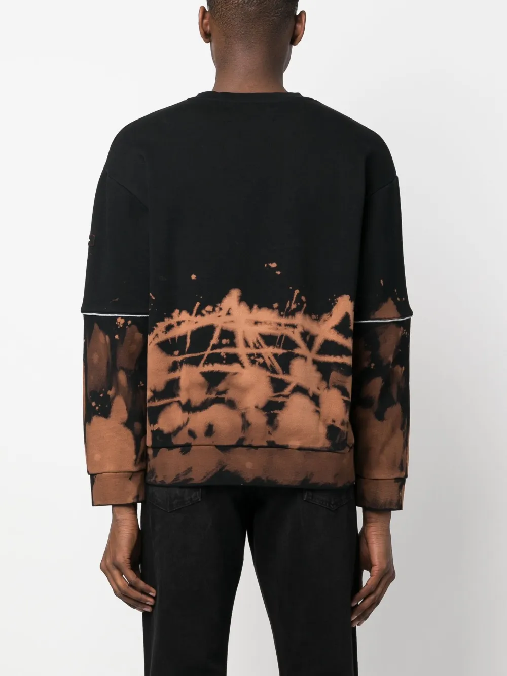 Черный/разноцветный, хлопок, вышитый логотип спереди, эффект разбрызганной краски, сплошной графичный принт, длинные рукава и круглый вырез.