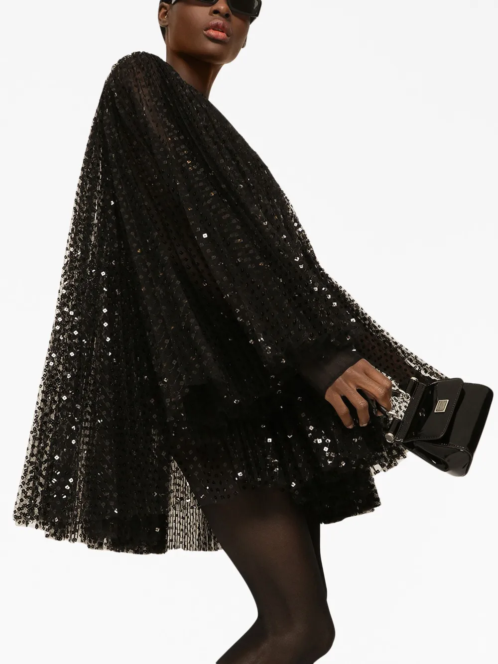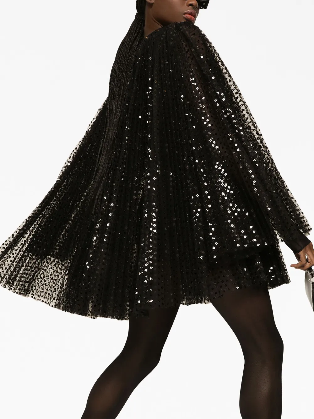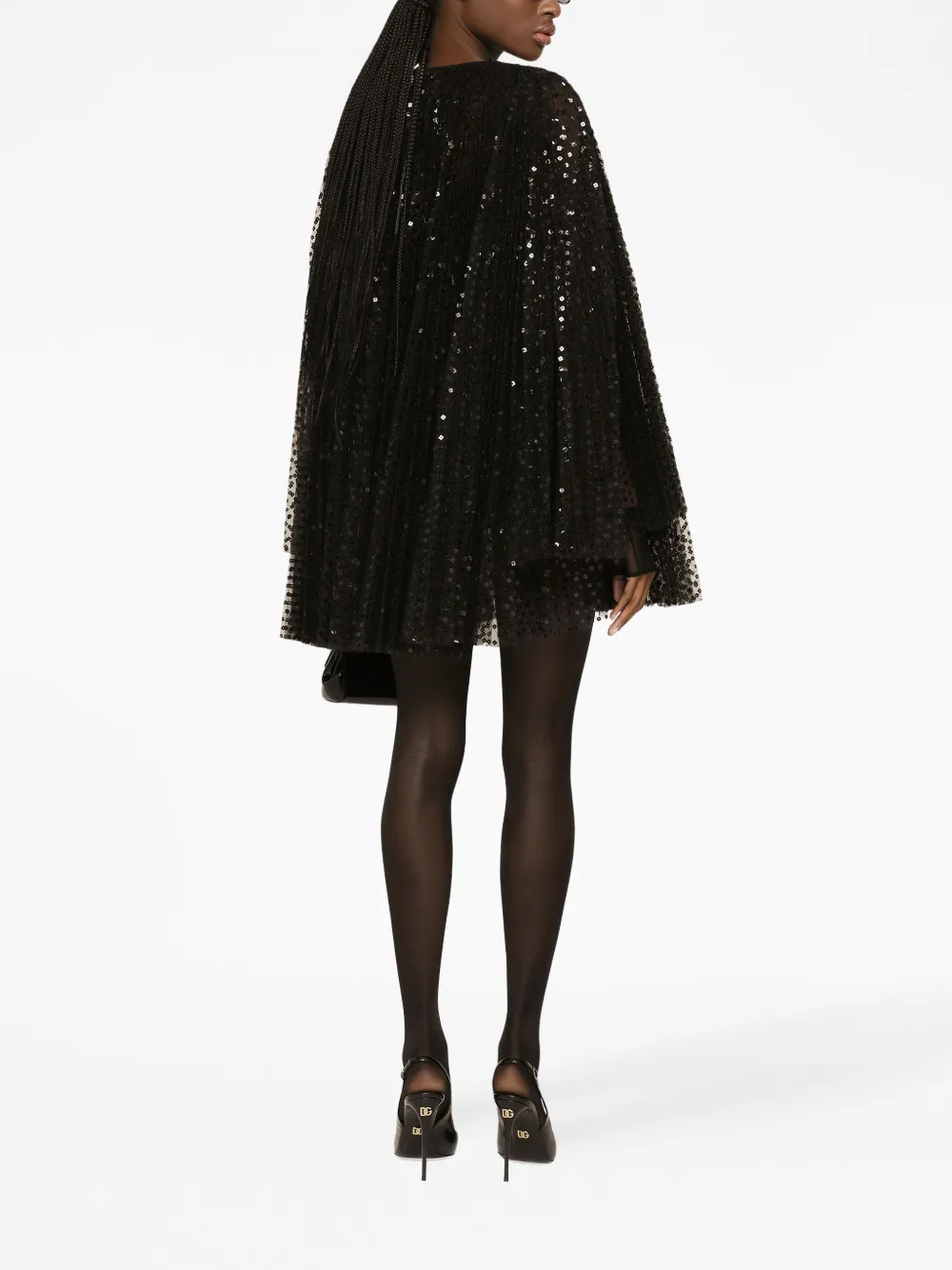 Расклешенное платье мини с пайетками DOLCE & GABBANA, черный