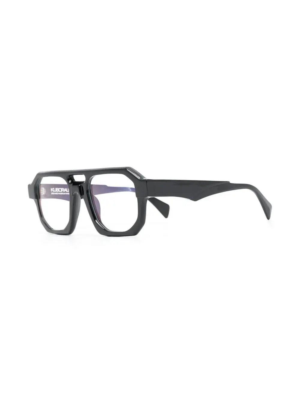 Черный, ацетат, оправа «пилот», прямые дужки и дужки с закругленными концами. В комплект входит защитный чехол для очков. Обратите внимание, что на FARFETCH продаются оправы с линзами без диоптрий.