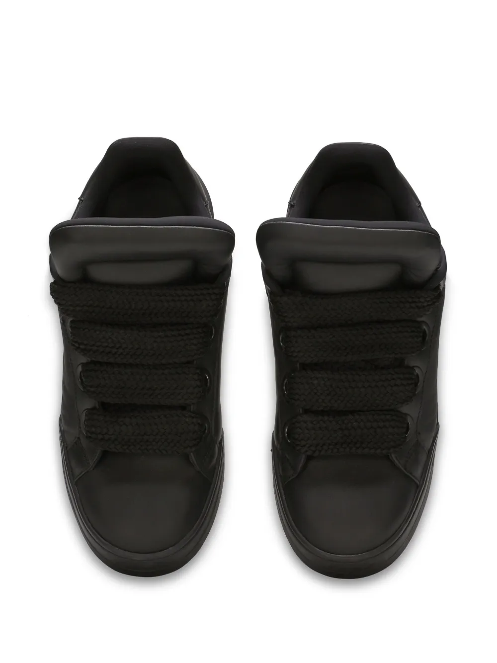 Черный, телячья кожа, закругленный носок, массивный язычок, шнуровка спереди, стелька с логотипом и плоская резиновая подошва.