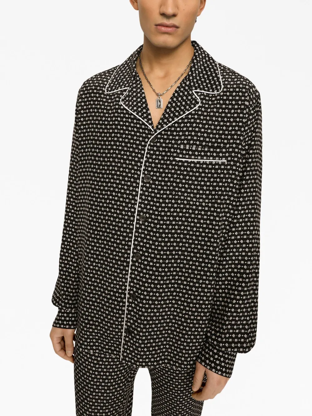 Шелковая рубашка с принтом DG DOLCE & GABBANA, черный