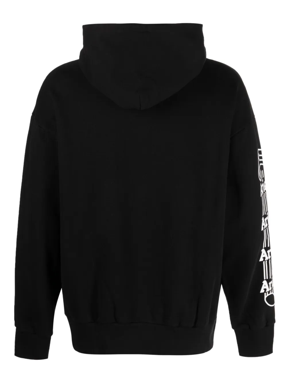 Черный, хлопок, логотип спереди, принт с логотипом на рукаве, затягивающийся на шнурок капюшон, длинные рукава и прямой подол.
