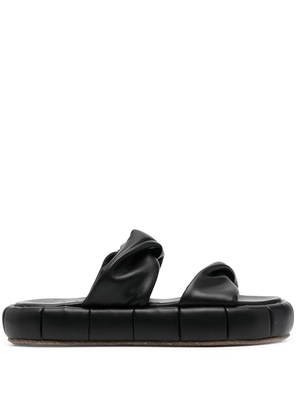 Черный, Т-образный ремешок, Т-образный ремешок, модель без застежки и массивная резиновая подошва. . Узнать больше о том, какие товары получают отметку «Ответственный выбор», можно из материала «Как мы оцениваем экологичность и этичность».