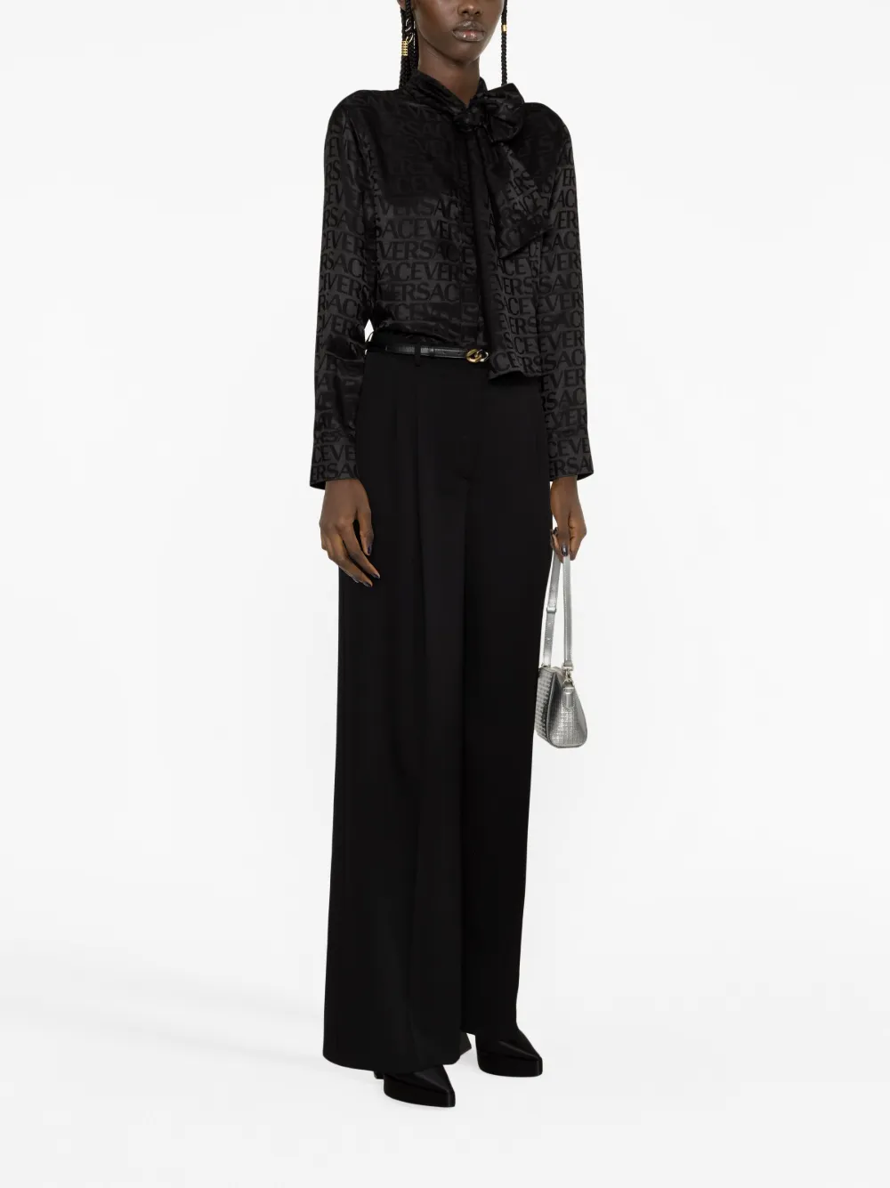 Рубашка Versace Allover с завязками, черный 120 845₽