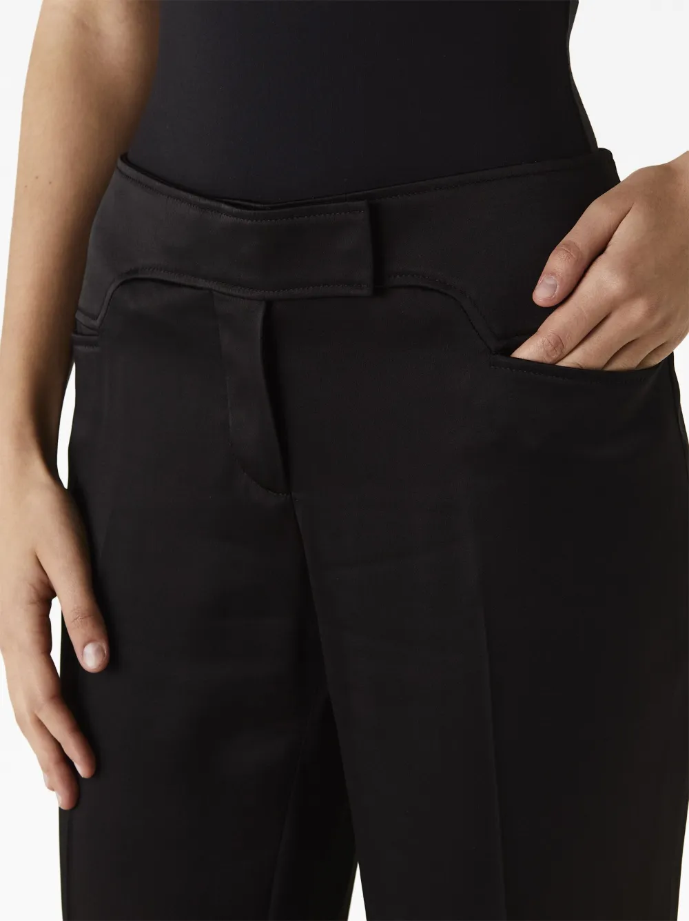 Черный, стрелки, вставки, потайная застежка спереди, два прорезных кармана спереди и зауженный крой.
