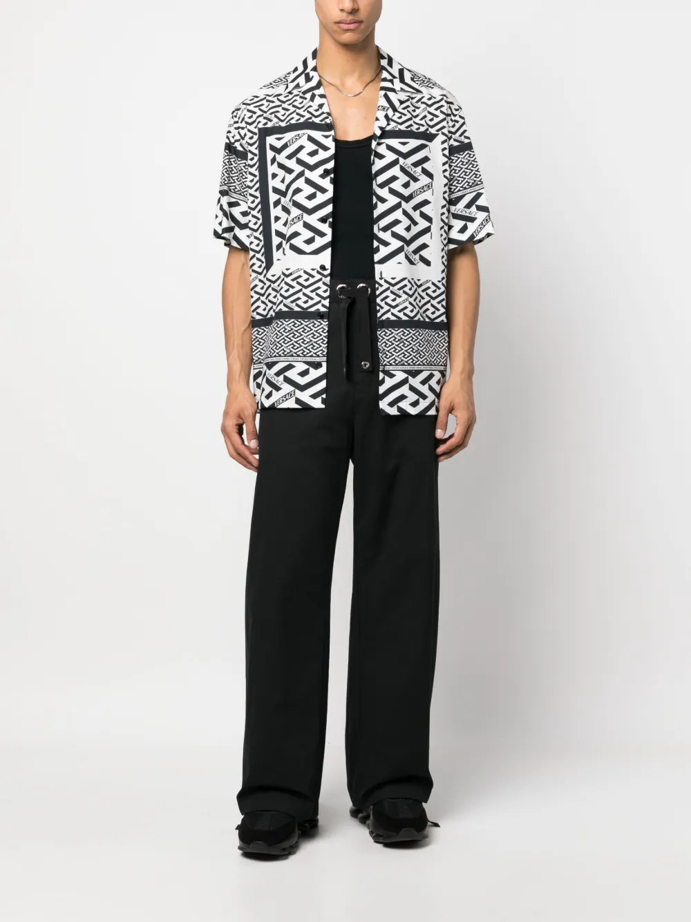 Прямые брюки с вышитым логотипом VERSACE, черный