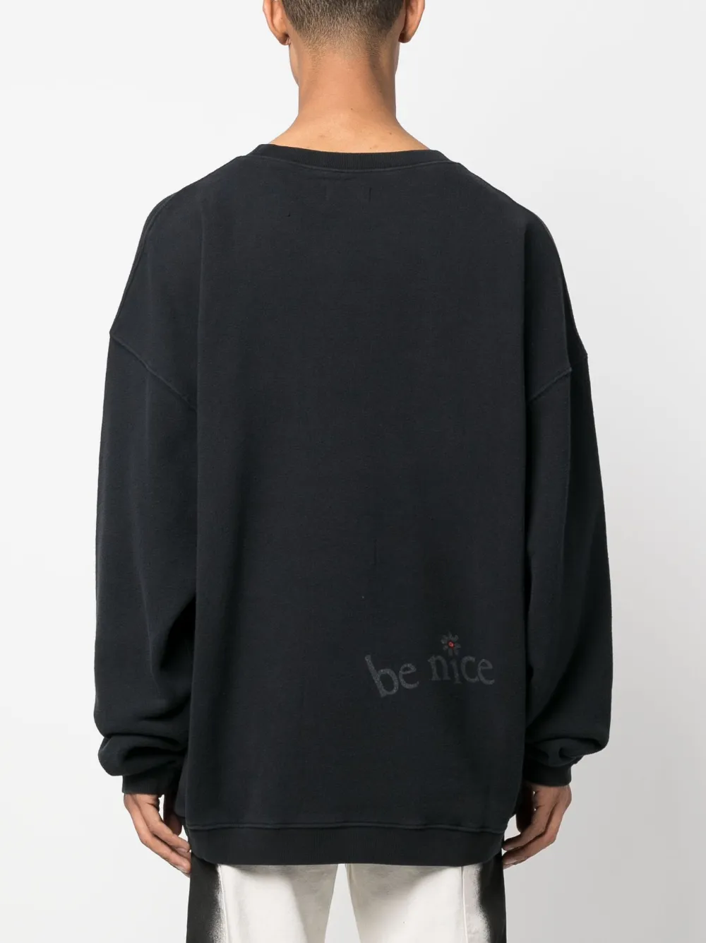 Черный, хлопок, графичный принт спереди, графичный принт на спине, круглый вырез и длинные рукава.