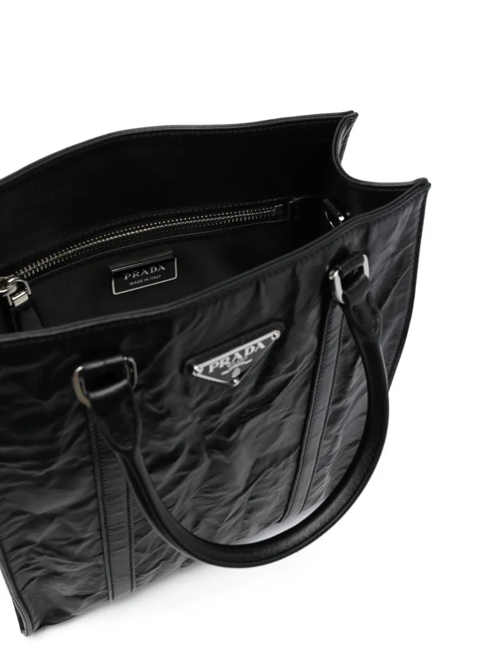 Сумка-тоут с жатым эффектом и логотипом Prada, черный